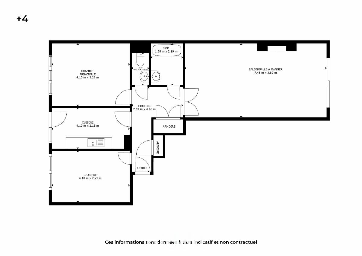 L’appartement lumineux n° 11 au 4e ét droit, cave et garage