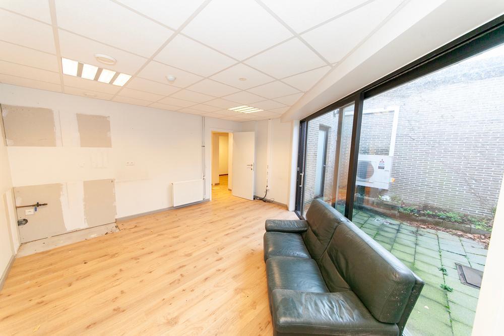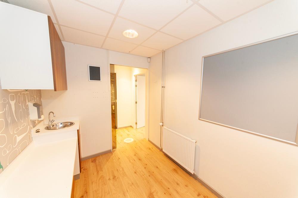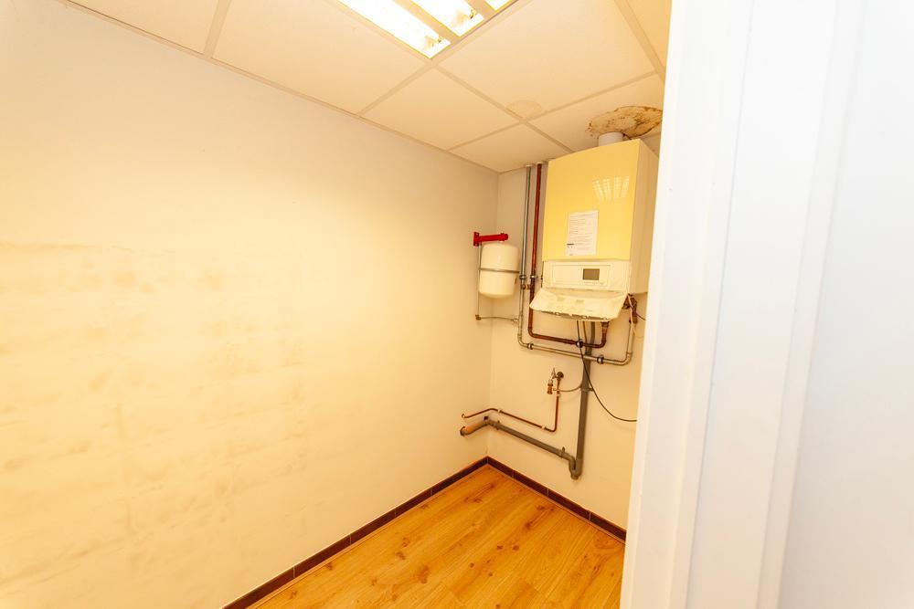 Boutique climatisée avec espace cuisine, cellier, buanderie, WC et débarras. Cuisine, chaufferie, bureau, séjour, cour. Salle de bains avec baignoire et lavabo, WC séparés, branchement pour lave-linge et débarras. 2 chambres.