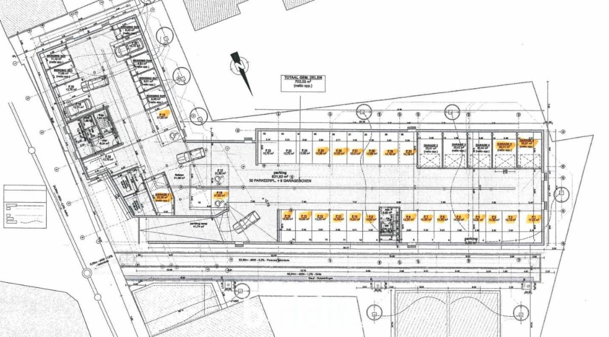 b) in mede-eigendom en gedwongen onverdeeldheid: 4/1.000sten in de gemeenschappelijke delen van het complex, waaronder de grond.