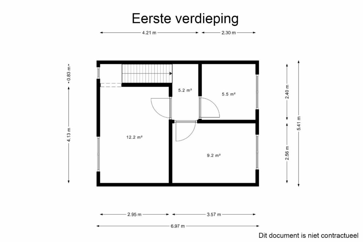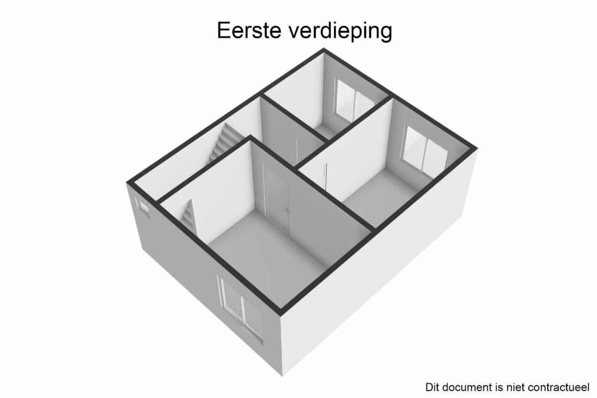 Premier étage : (accès par escalier) hall de nuit, 1 chambre à l’avant et 2 chambres à l’arrière.