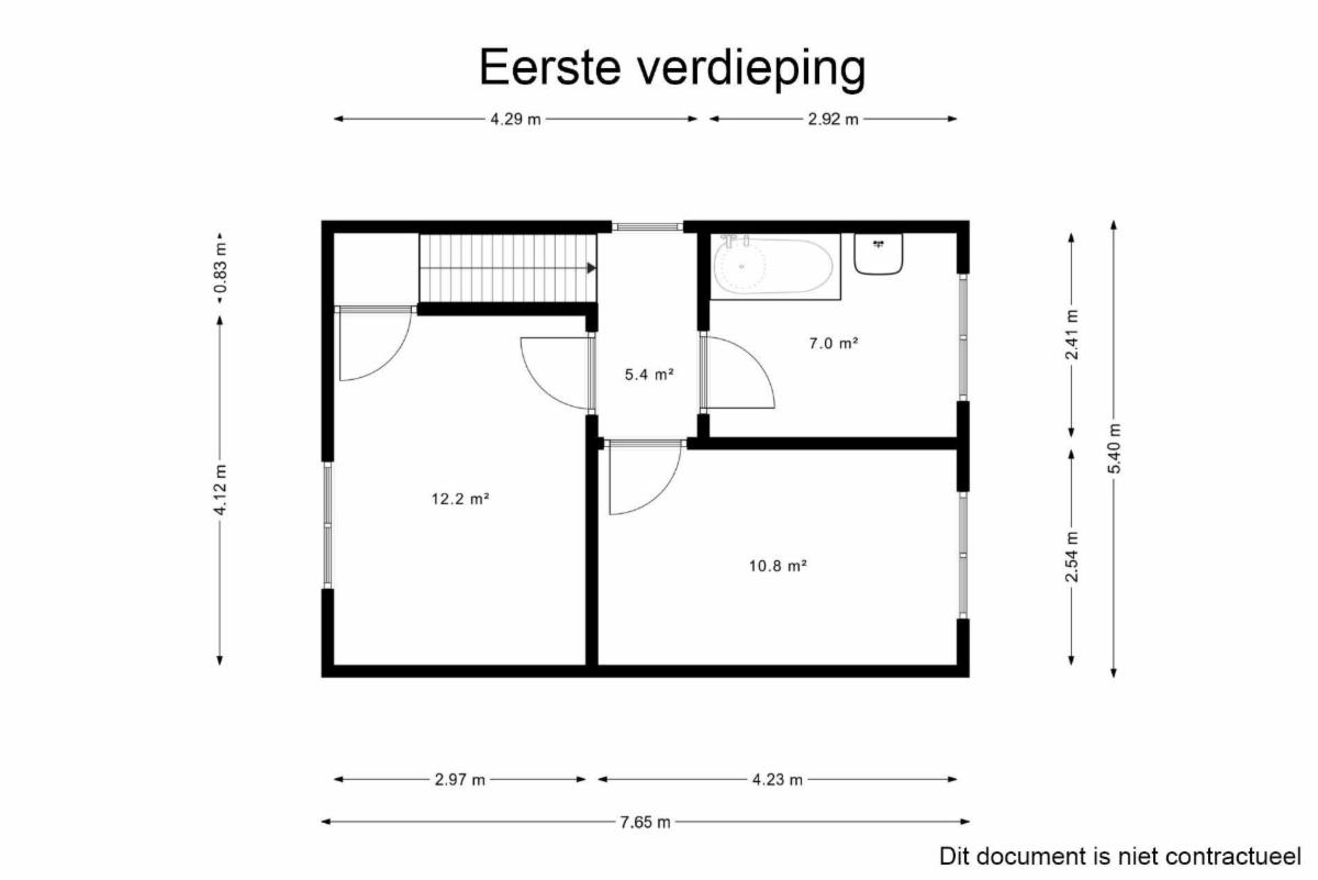 Premier étage : (accès par escalier) hall de nuit, 1 chambre à l’avant, salle de bain et 1 chambre à l’arrière.