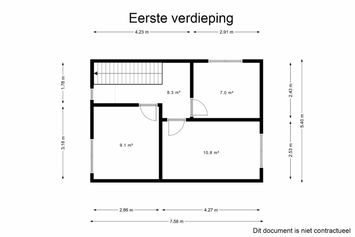 Premier étage : (accessible par un escalier en bois) palier, 1 chambre à l'avant et 2 chambres à l'arrière.