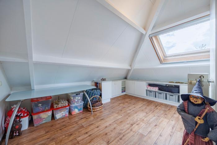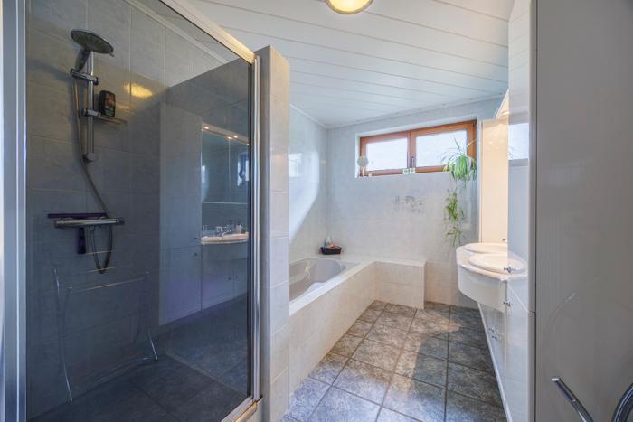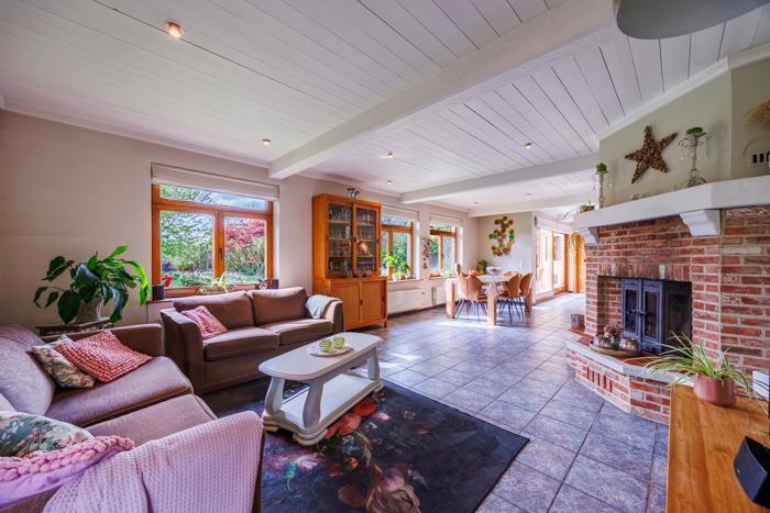La maison offre une sensation très agréable grâce à un vaste espace de vie (y compris la cuisine) de 57 m². Elle dispose de quatre chambres, dont une au rez-de-chaussée. Les deux niveaux sont équipés d’une salle de bains, dont l’une comprend une baignoire. L’ensemble rend la maison adaptée à toutes les étapes de la vie.