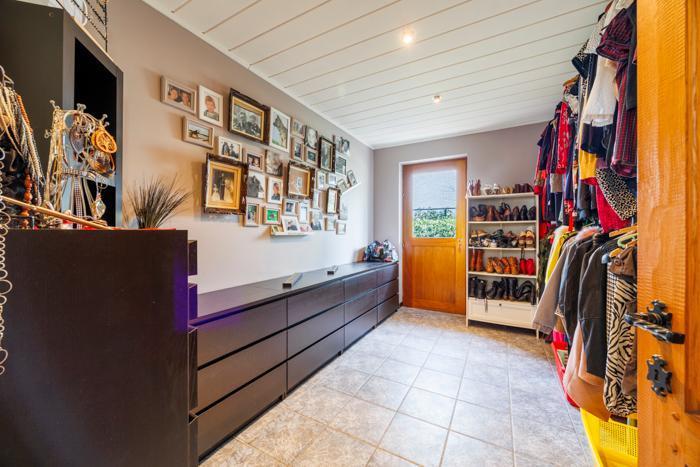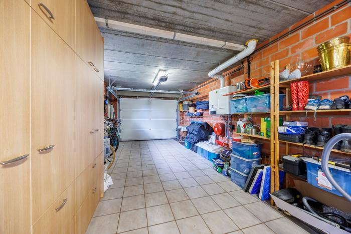 Au rez-de-chaussée, une pièce supplémentaire avec accès extérieur peut par exemple être utilisée pour une activité indépendante. Un garage intégré avec porte automatique est également présent.