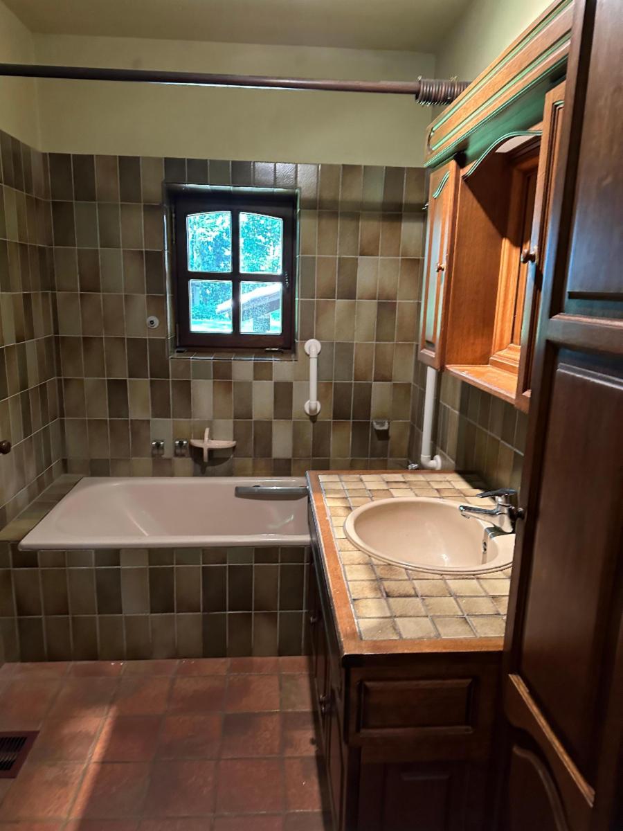 À l’étage 1 : 3 chambres dont une grande (avec lavabo), un wc, une salle de bains (avec baignoire et lavabo), un grenier aménageable;