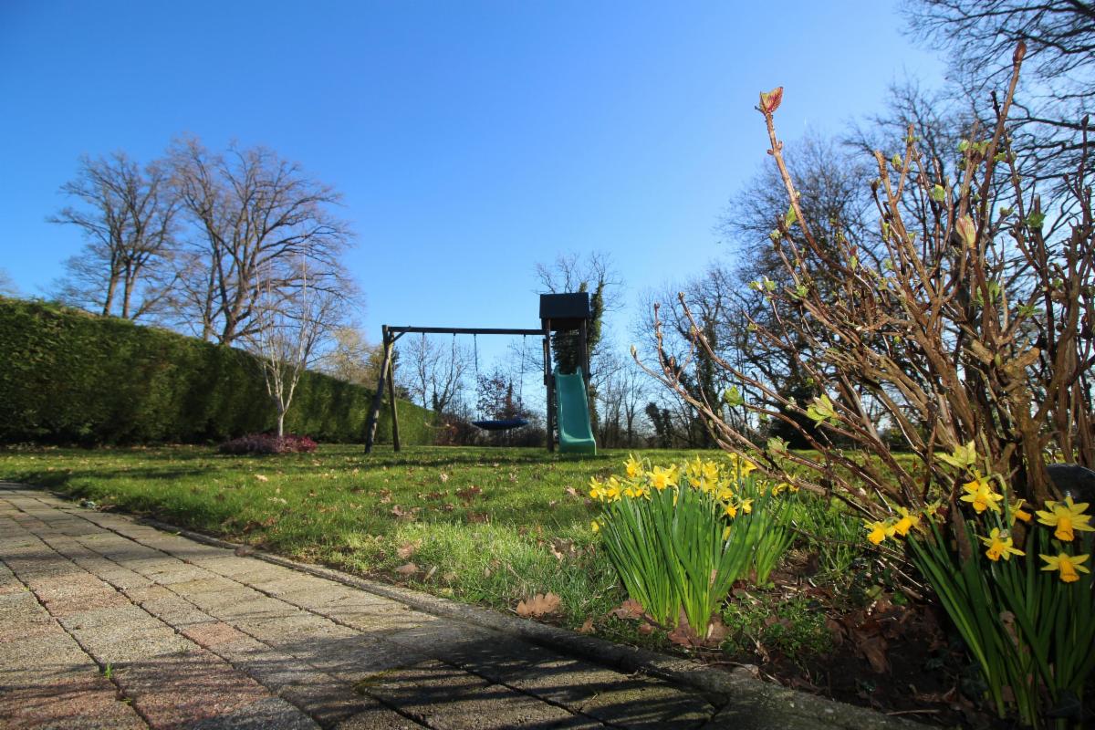 Le bien bénéficie d’abords particulièrement soignés, d’un grand jardin aménagé (avec un module pour enfants), d’une terrasse couverte, ainsi que d'un espace de stationnement et d’un double garage avec portes électriques.