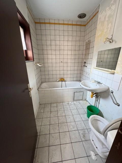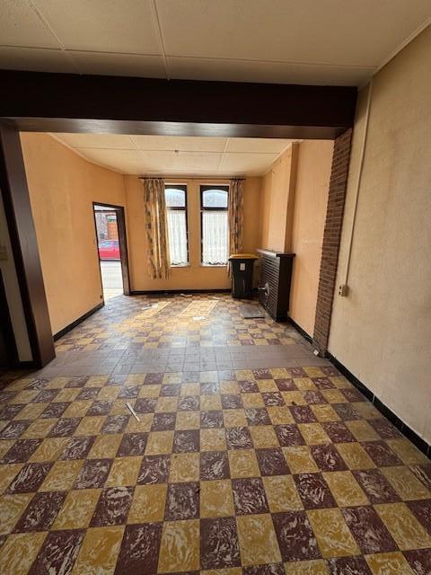 Maison d'habitation 2 façades comprenant au rez-de-chaussée : hall d'entrée, salon-salle à manger, cuisine, salle de bains avec WC - Etage : 2 chambres, grenier aménageable - cave au sous-sol, cour à l'arrière - chauffage par convecteurs gaz - châssis simple vitrage