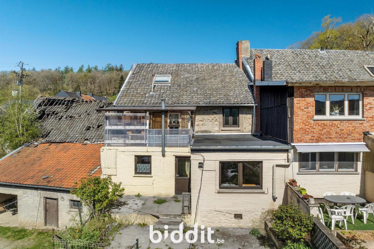 Maison mitoyenne des 2 côtés, avec un appartement et un jardin, située dans un quartier rural à Gomzé-Andoumont (Sprimont). Construction entre 1900 et 1918, à rénover complètement, dans une rue calme et un environnement verdoyant.