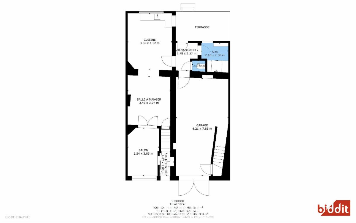 Superficie du terrain d'assiette selon cadastre : 381 mètres carrés