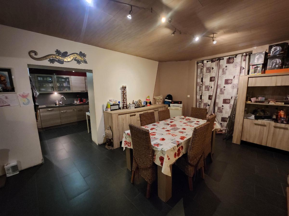 - Au rez-de-chaussée : un hall d’entrée avec wc (+/- 15 m²), un séjour/salle à manger (+/- 35 m²), une cuisine (+/- 10 m²). En annexe : une véranda.
