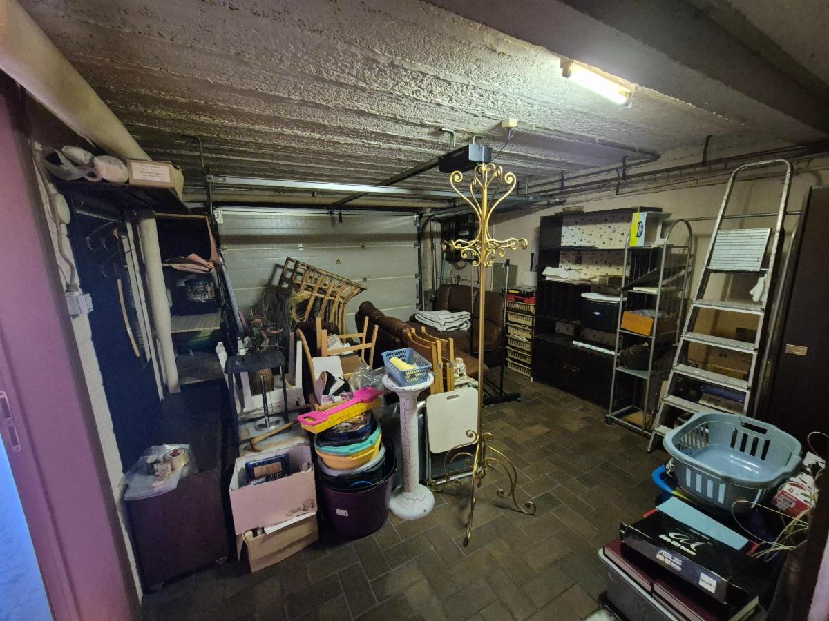Rez-de-chaussée : hall d’entrée, garage (avec porte sectionnelle), buanderie, chaufferie, accès jardin et terrasse