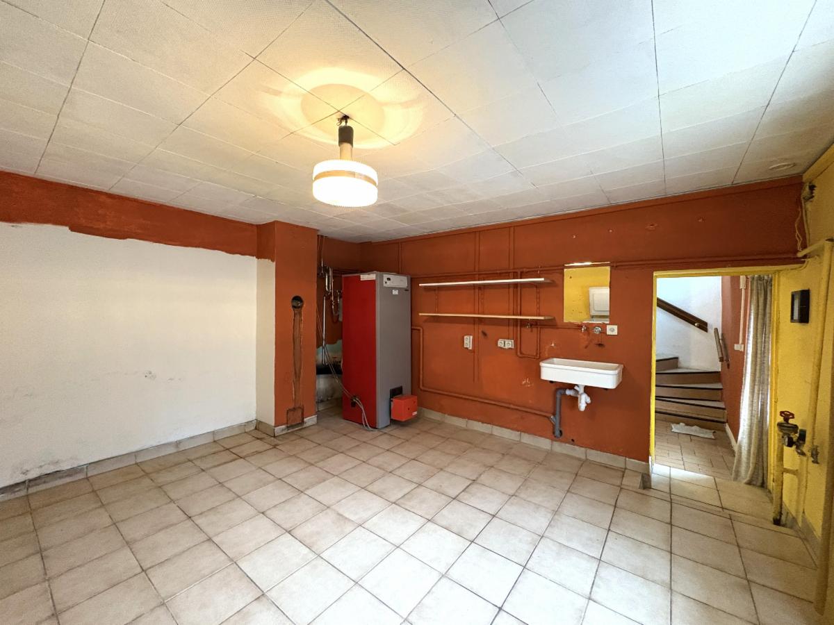Rez-de-chaussée : hall d’entrée, séjour (salon et salle à manger), cuisine non-équipée, 2ème salon, salle de bains (baignoire, douche, lavabo et un WC séparé), réserve, buanderie avec coin chaufferie et 2 caves.