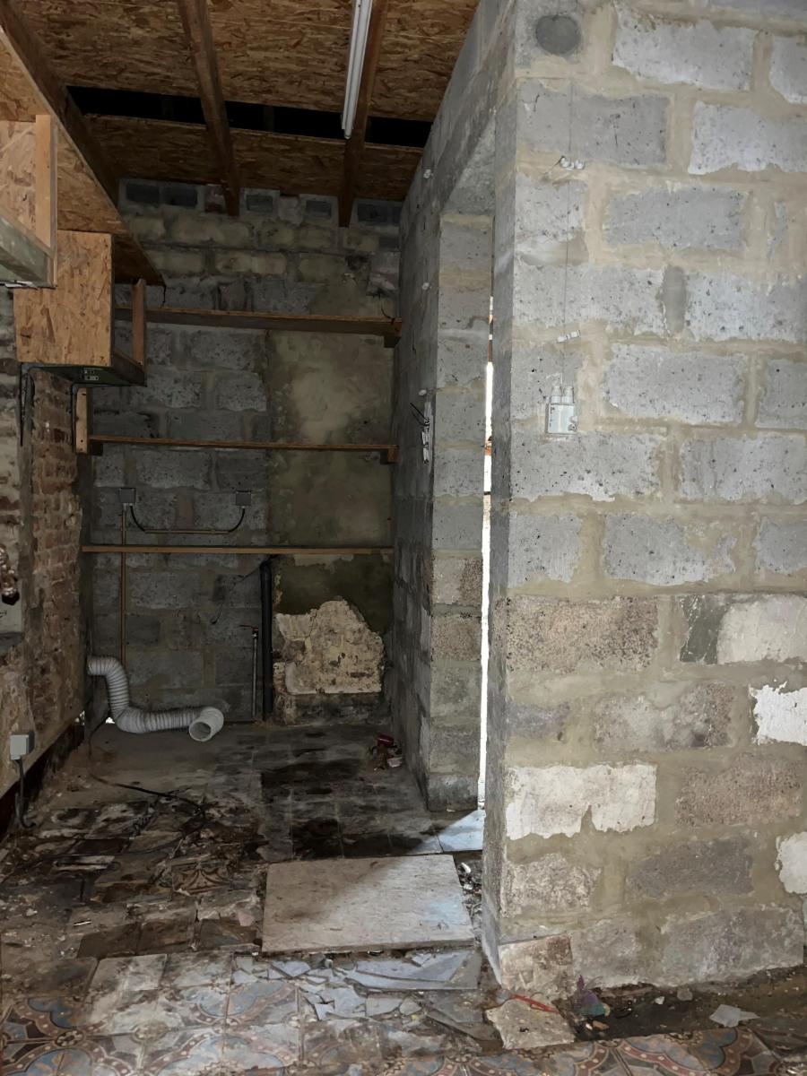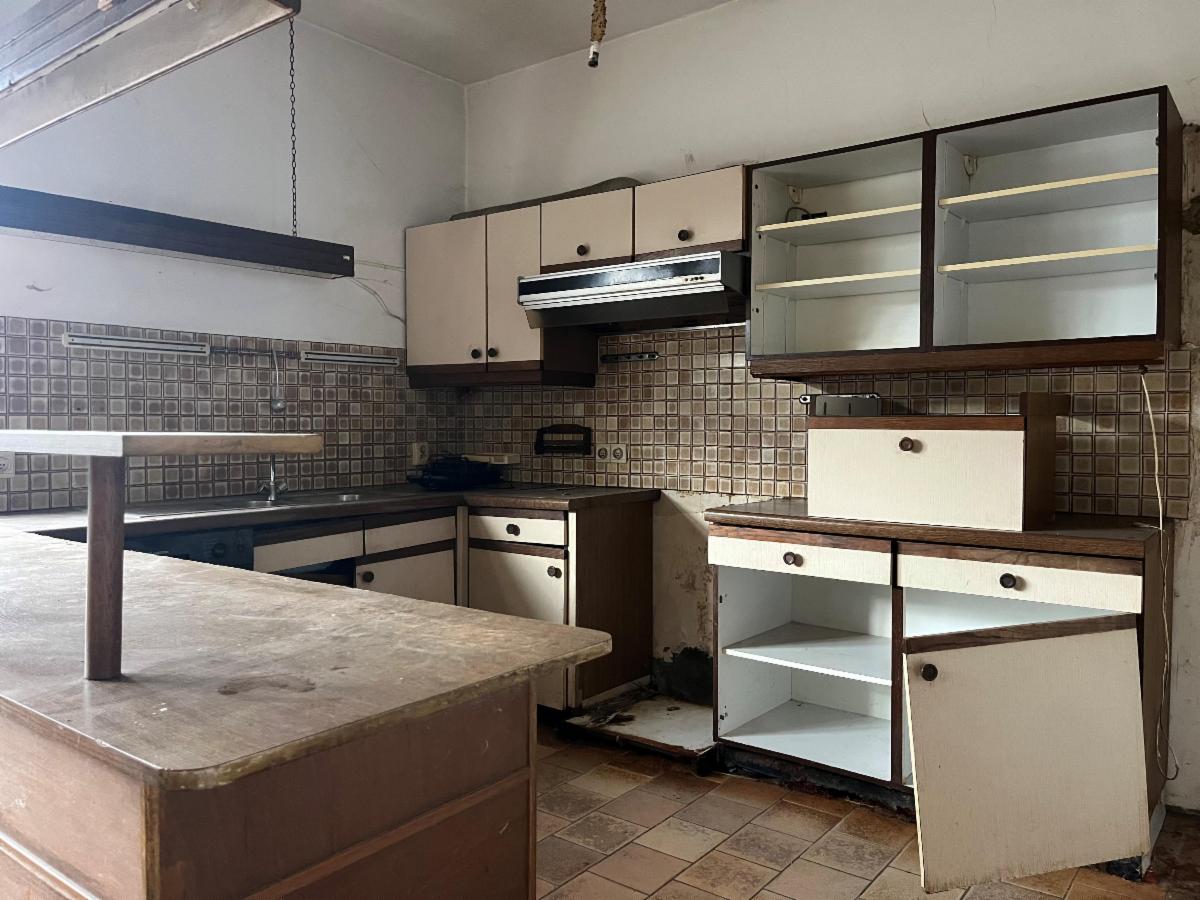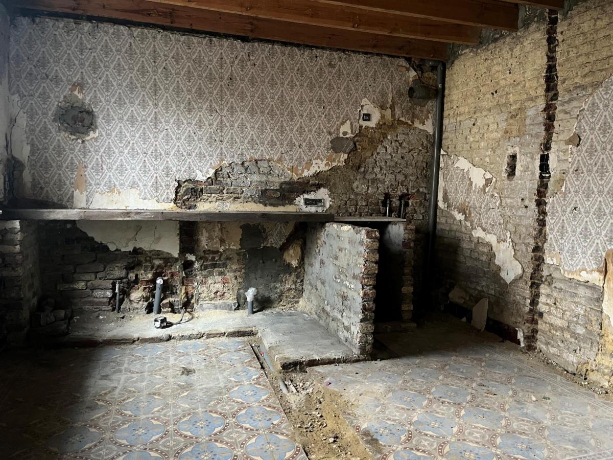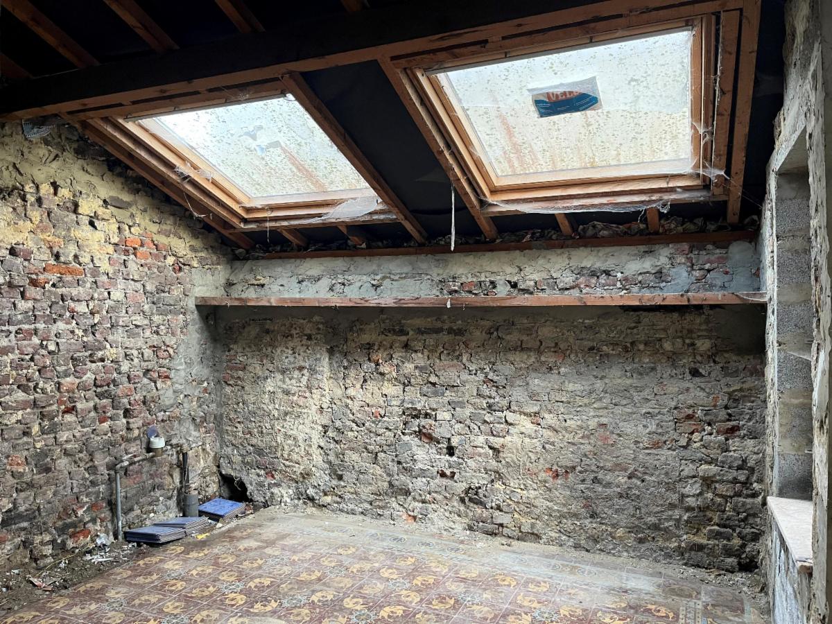 Rez-de-chaussée : un séjour (+/- 27,7m²), une cuisine avec coin à manger (+/- 20,9m²), une salle de douche (+/- 7,2m²) et pièce en gros œuvre fermé (+/- 33,2m²).