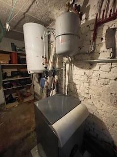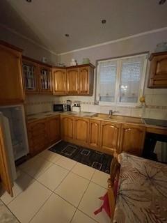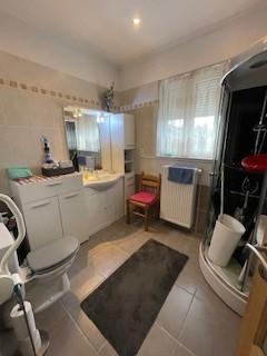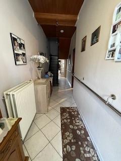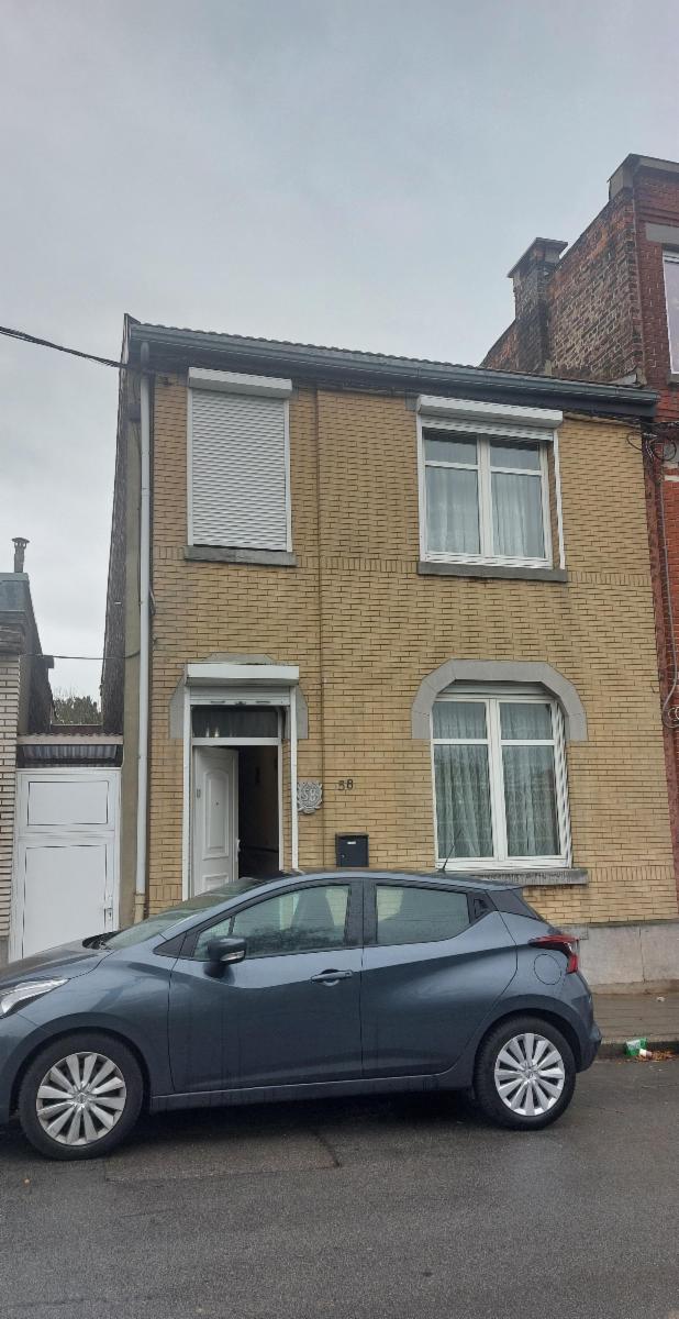 Maison 3 façades avec jardin bénéficiant d'une surface habitable selon PEB de 106m2. La maison se compose comme suit : au sous-sol, un WC, deux caves (dont une contenant la chaudière à mazout), une arrière-cuisine, une grande pièce de vie, une véranda (où se situe la citerne à mazout de 3.000 litres), un jardin avec terrasse - au rez de chaussée, un hall d'entrée, un salon, une salle à manger, une cuisine équipée, une salle de douche - au premier étage, deux chambres (une plus petite et mansardée), une salle de bain et un grenier. Le bien dispose de châssis double vitrage, de volets électriques et d'un passage latéral privé qui relie la rue à la véranda. Contrôle installation électrique non conforme, certificat PEB G (520 kWh/m2.an), revenu cadastral 700 euros