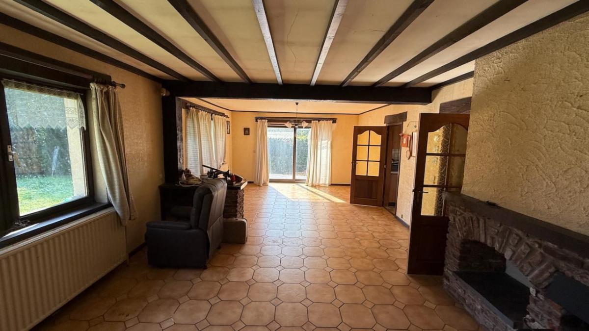 - Séjour lumineux comprenant salon et salle à manger, agrémenté d’un poêle à bois ;