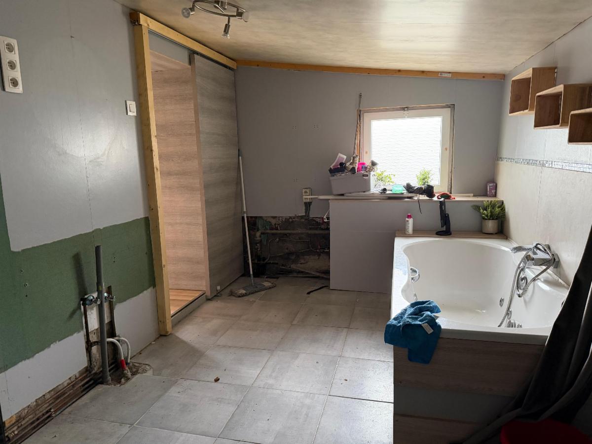 Au rez: Cuisine, beau séjour, chambre/bureau et SDB avec WC, baignoire et douche