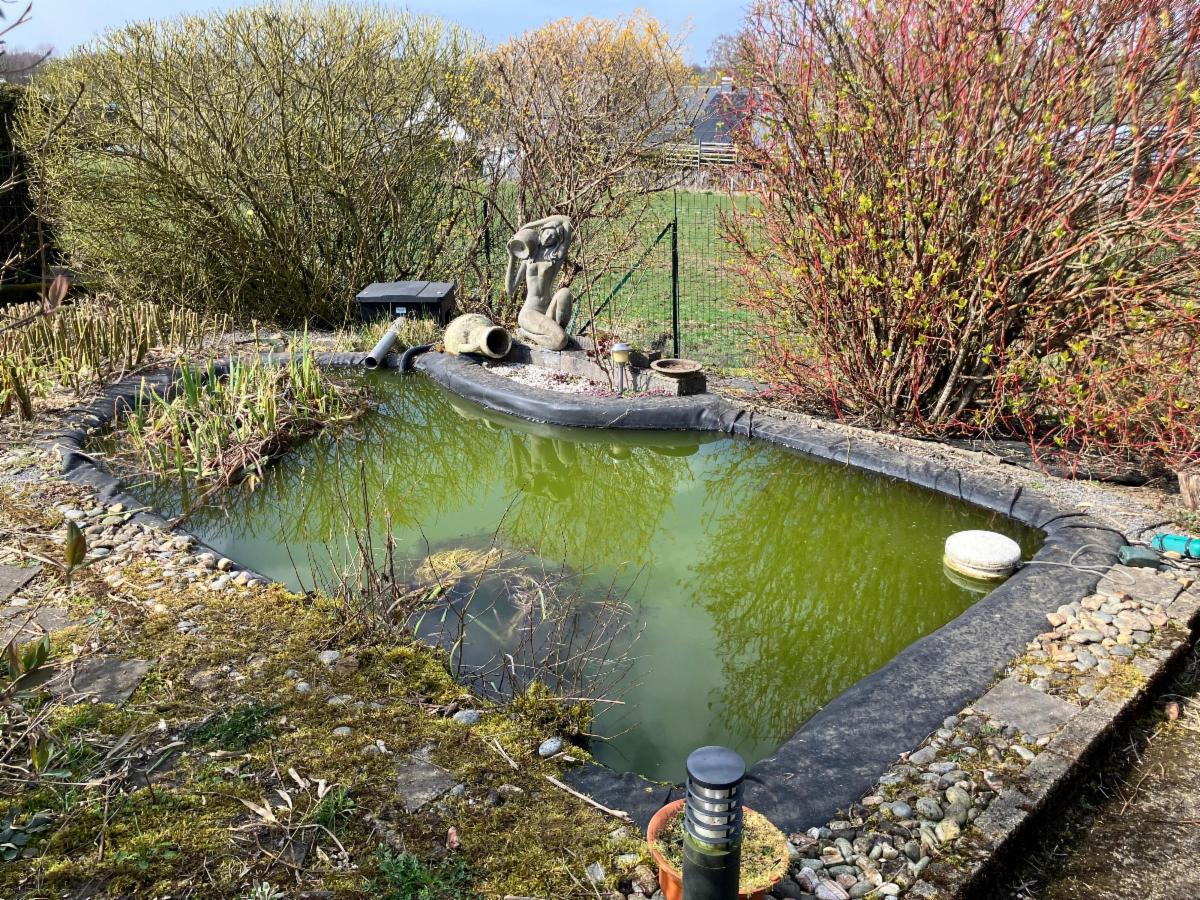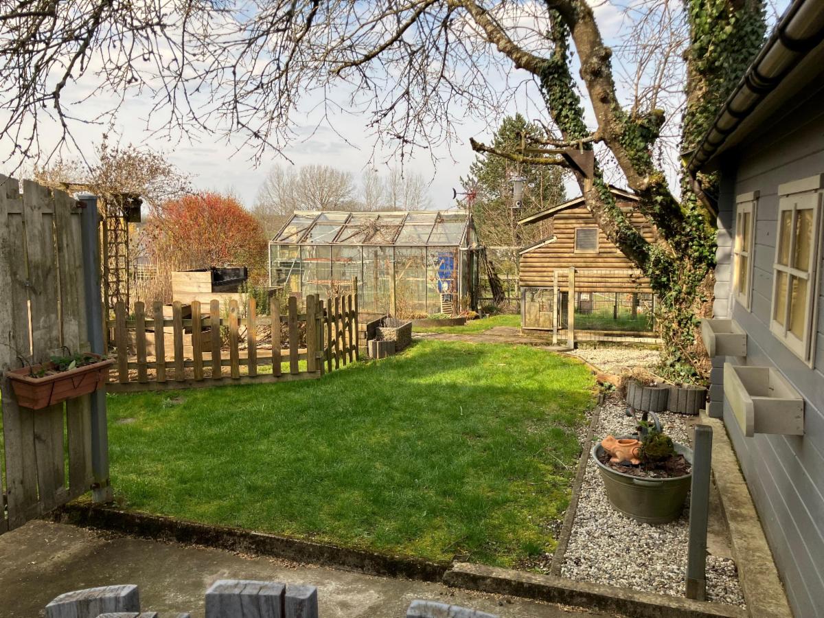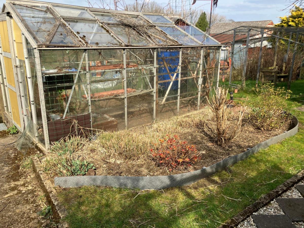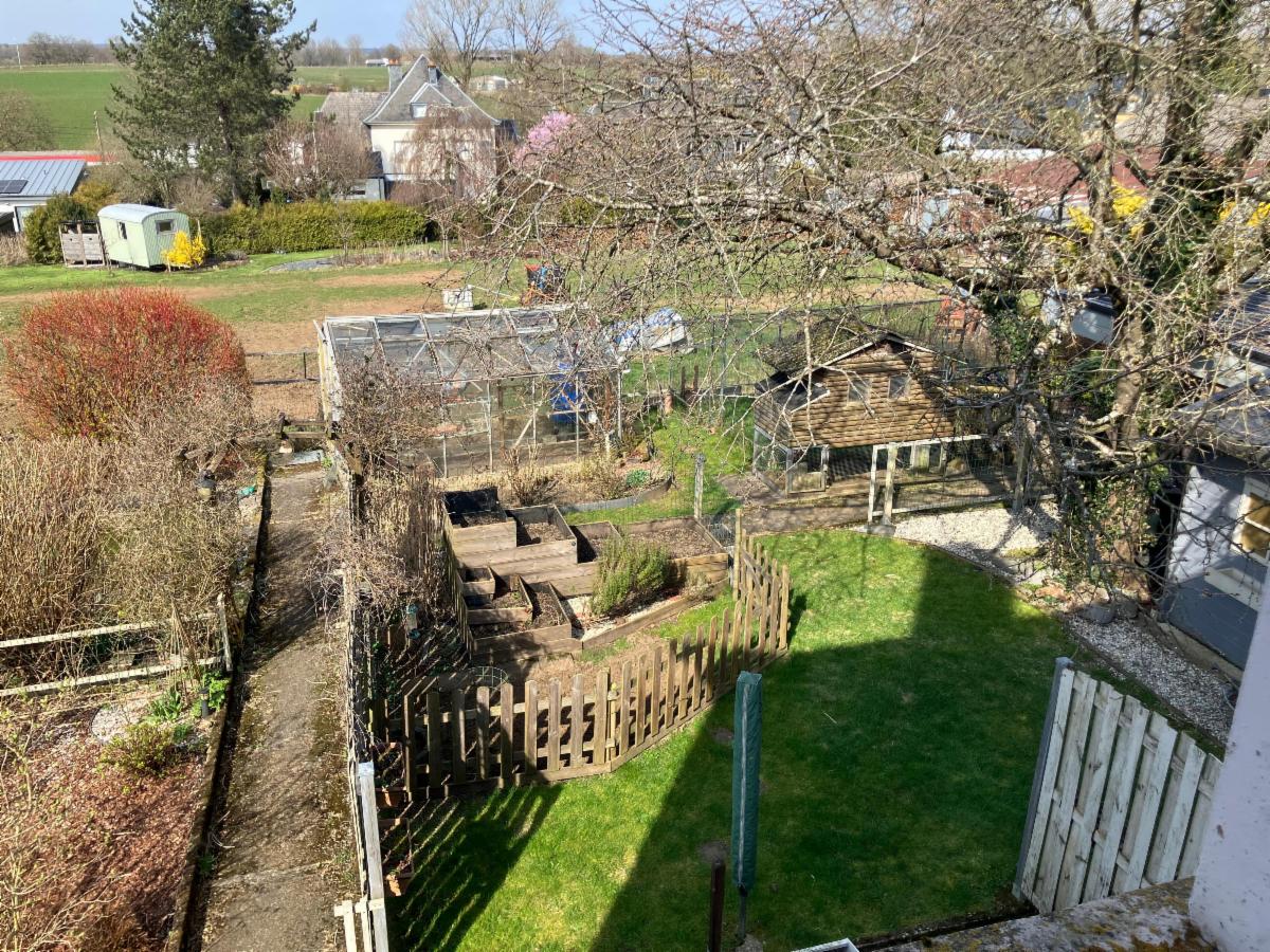 Grand jardin avec serre, potager et poulailler.