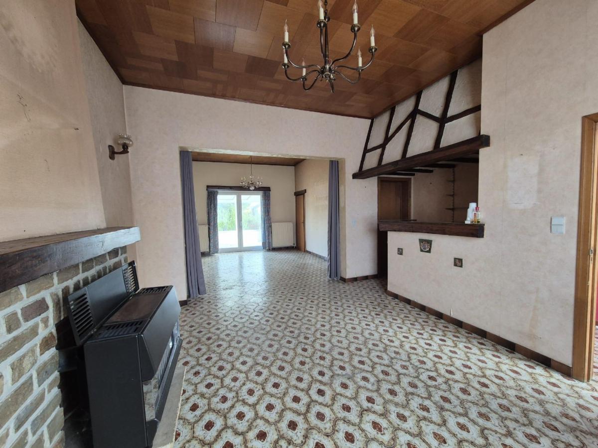 - Au rez-de-chaussée : un hall d’entrée (+/- 3 m²), un living (+/- 36,5 m²), une cuisine (+/- 10,8 m²), un bureau (+/- 8,8 m²), une salle de douche (+/- 5,5 m²), un hall/dégagement/escalier (+/- 1,7 m²). En annexe : une véranda (+/ 12 m²).