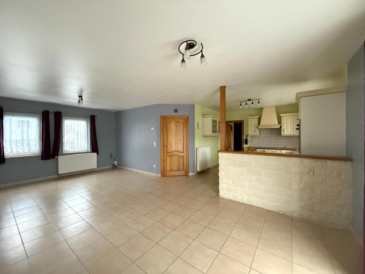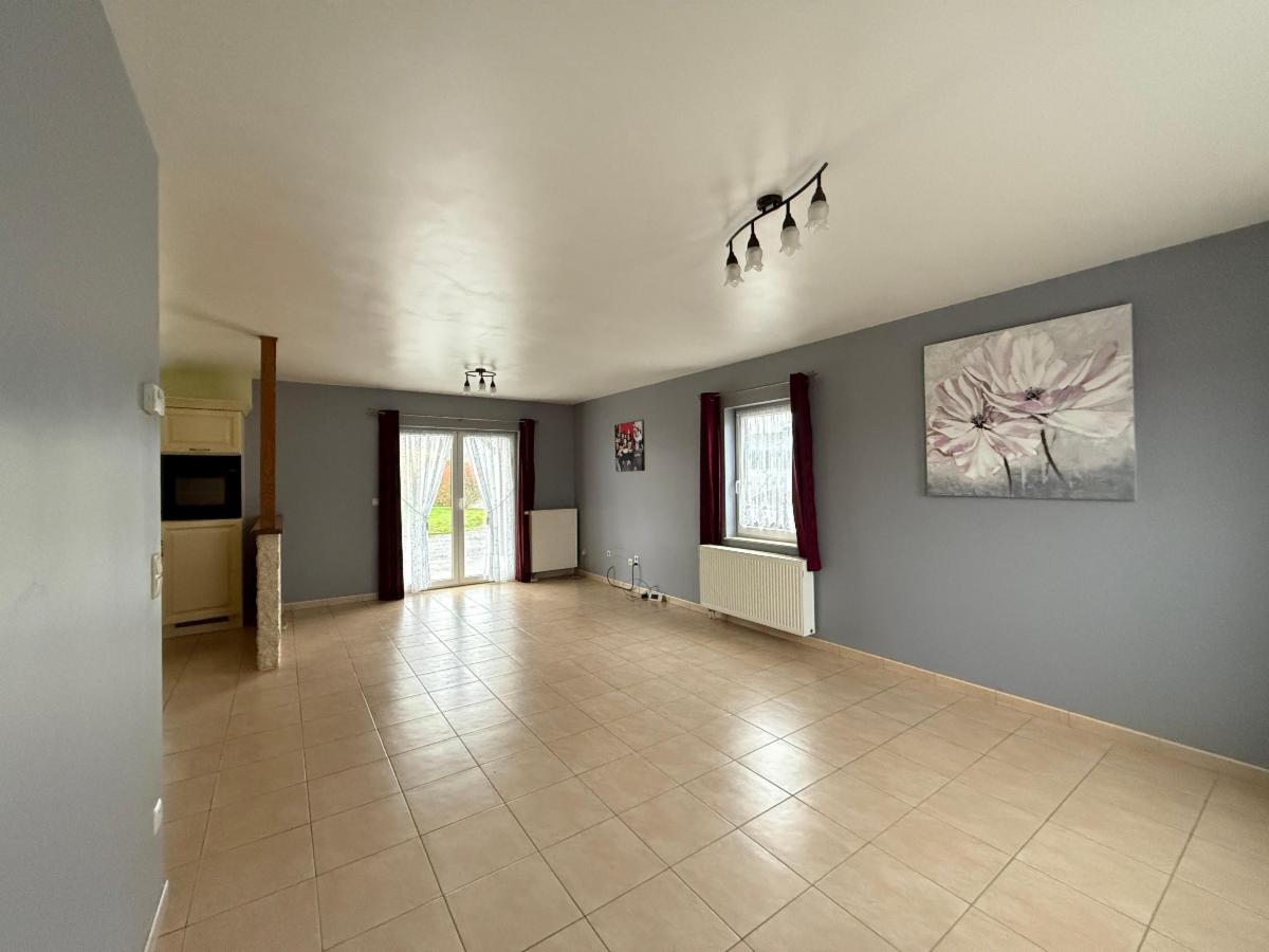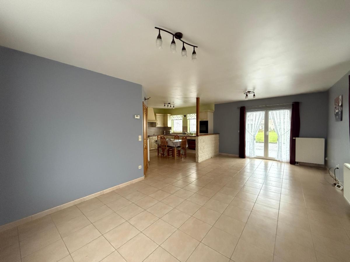 Rez-de-jardin : Hall, salon, salle à manger, cuisine ouverte avec coin à manger, salle de bain, WC, buanderie,