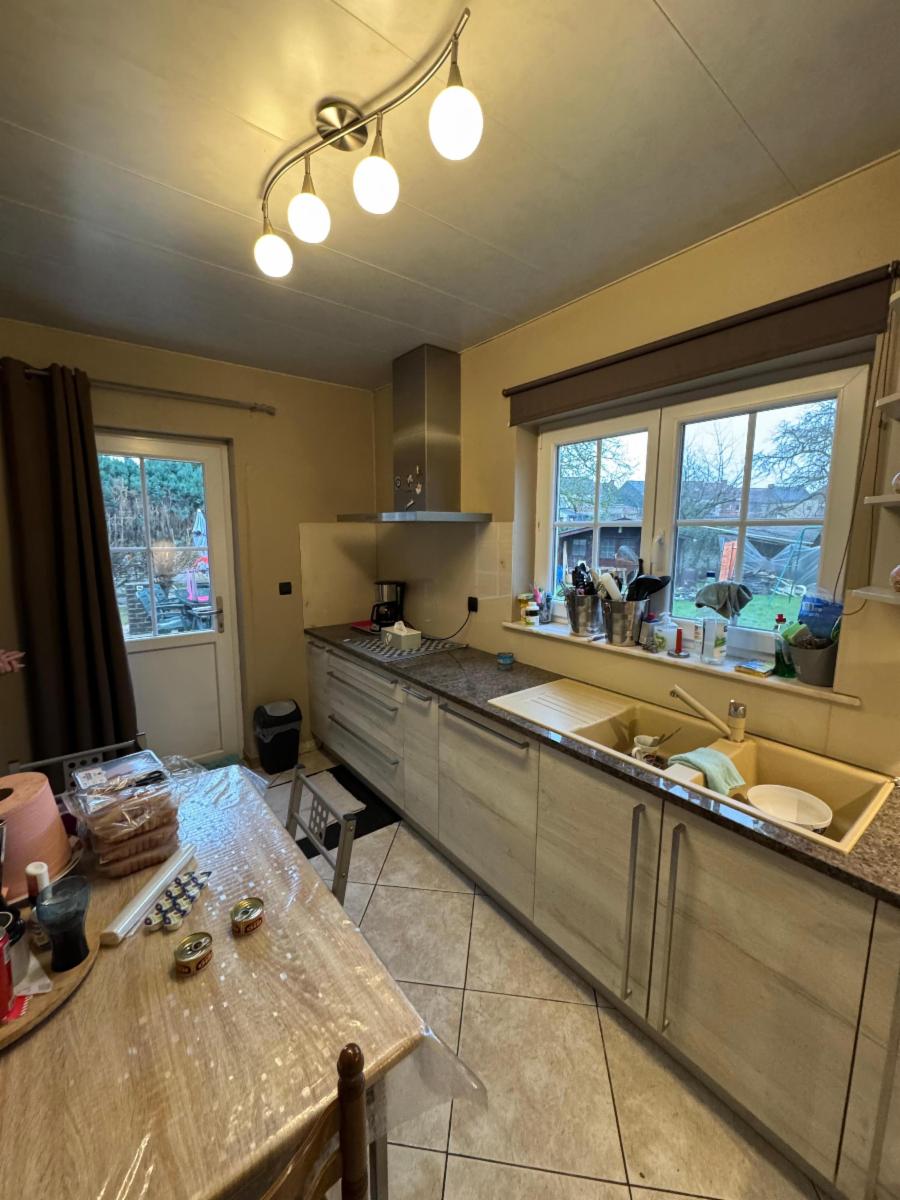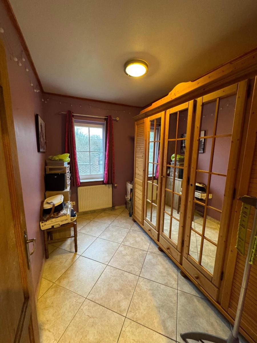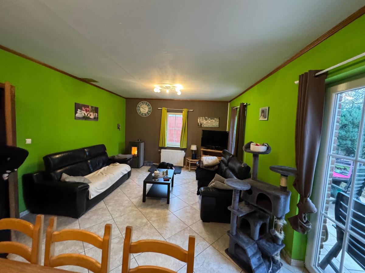 Belle maison 4 façades de plain-pied qui se compose comme suit : un hall d'entrée, un WC séparé, un séjour, une cuisine, 3 chambres, une salle de douche, un garage, une chaufferie. Extérieur : un jardin, un chalet. Equipements : chauffage central au mazout (cuve de 1.000 L), chaudière à remplacer, chauffage au pellet, châssis double vitrage et sécurisé (datant de 2017), citerne d'eau de pluie. PEB : E. Electricité non conforme. Visites sur rendez-vous.