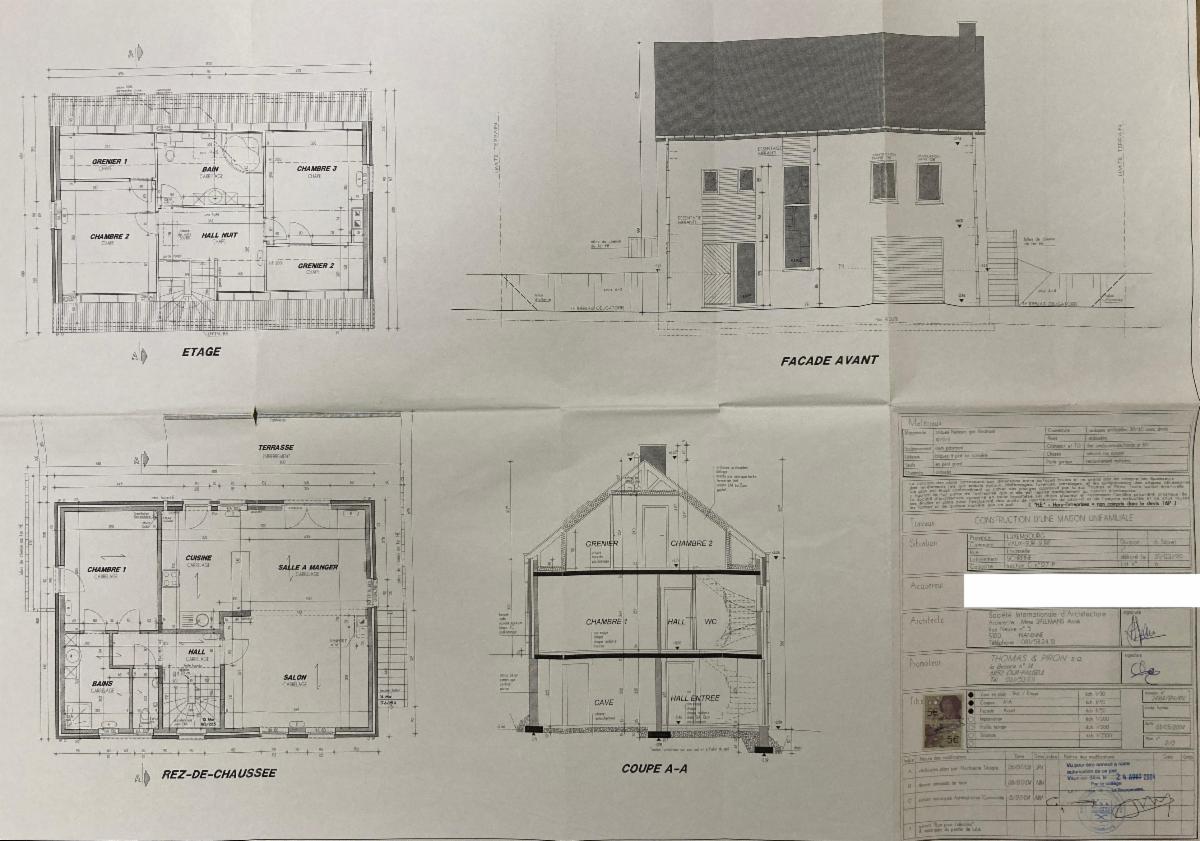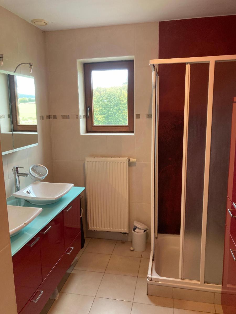 Maison d'habitation bel étage 4 façades "Poisson-Moulin 20", cadastrée Commune de VAUX-SUR-SÛRE 6ème division Sibret (82026) section C n° 0127PP0001, de 2005, RC 775€, sur et avec terrain de 11a 37ca (lot 6), comprenant : niveau à rue : hall d'entrée avec escalier, cave, buanderie, garage (1 véhicule, porte ouverture manuelle) avec chaufferie ; niveau jardin : hall avec escalier, wc (avec évier), séjour en "L" (cuisine équipée avec frigo américain, salle à manger avec poêle et salon), chambre parentale avec salle de bains (double évier, douche) ; étage (mansardé) : hall de nuit, 2 chambres (avec débarras), salle de bains (évier, baignoire d'angle, wc). Equipements : chauffage central (chaudière ALFEA Hybrid Duo Fioul, citerne à mazout 2.200L, pompe à chaleur couplée à la chaudière), châssis bois double vitrage, électricité conforme (20 panneaux photovoltaïques), PEB B, citerne d'eau de pluie (pour 2 wc et robinet jardin), mini station d'épuration. Extérieur : parkings grenaillés à l'avant, terrasse, jardin, serre, abri en bois. Vente sous régime des droits d'enregistrement. Le prix annoncé est une base de négociation n'engageant pas le vendeur. Les informations sont fournies à titre indicatif et non contractuel.