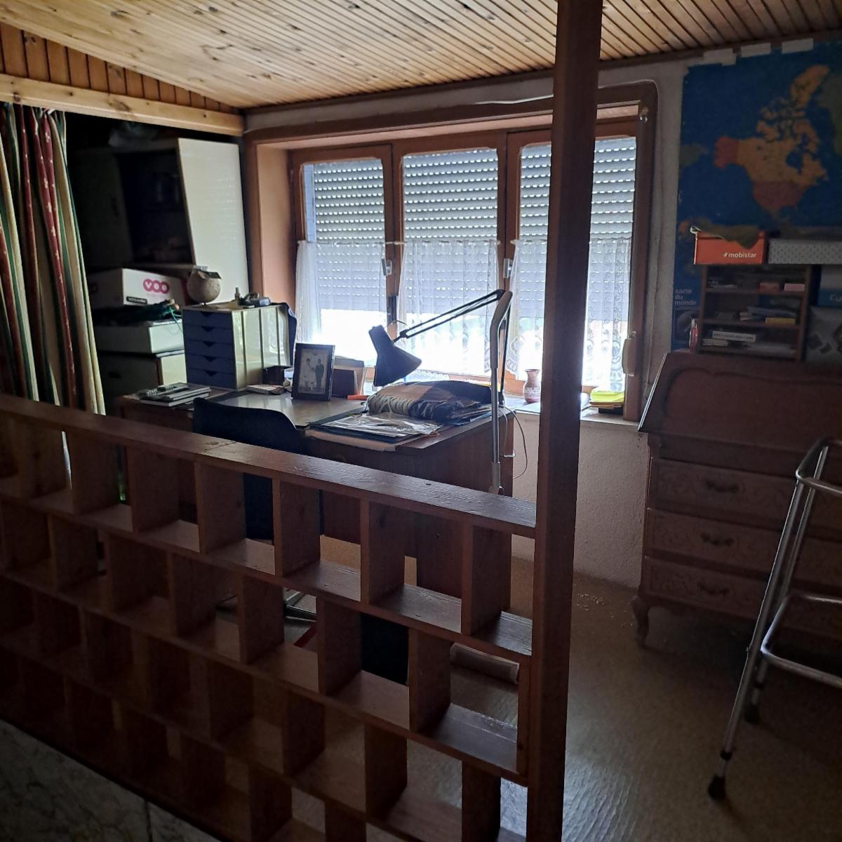 Maison d'habitation comprenant : SS : une grande cave. REZ : un hall d'entrée, un salon, une salle à manger, un petit bureau, une petite cuisine et une salle de douche avec WC. ET : une petite mezzanine avec bureau, une grande chambre et deux petites chambres. EXT : un passage latéral, une remise, un petit garage et un jardin avec une serre. Divers : volet en PVC, poêle au gaz et feu au bois.