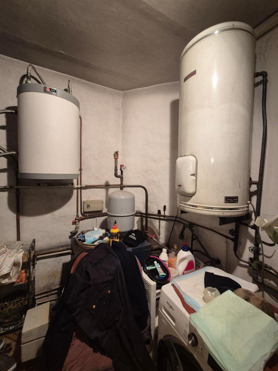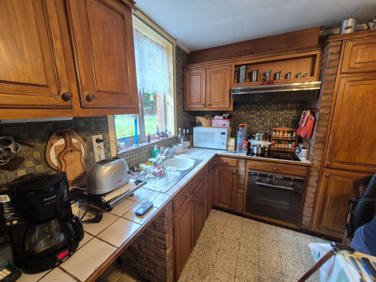 RDC: cuisine équipée (évier, four, taques électriques, frigo, hotte) (16 m²), couloir avec WC séparé, salle de bains (baignoire, bidet, lavabo) (5 m²), bureau (7 m²), deux chambres (18 m²), autre bureau, hall donnant vers la chaufferie (boiler de 2 ans, boiler d'attente, raccords pour machine à laver et séchoir), salon avec cassette (19,5 m²), salle à manger (28 m²)