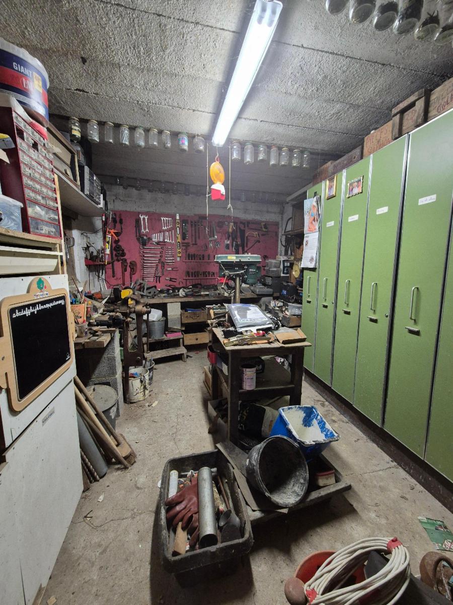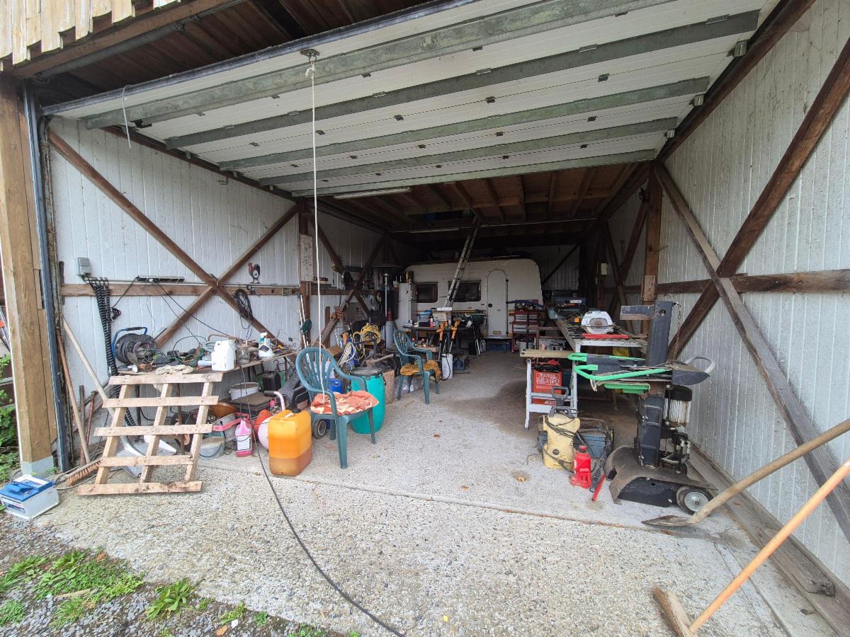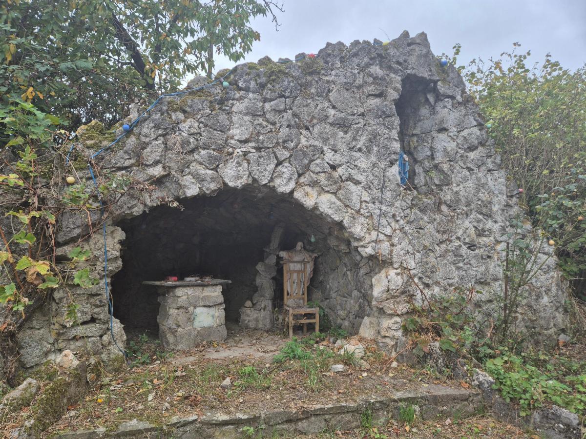 Extérieur: jardin clôturé, premier hangar avec grenier (80 m²), second hangar avec étage accessible par échelle (50 m²), atelier, remise, grotte mariale