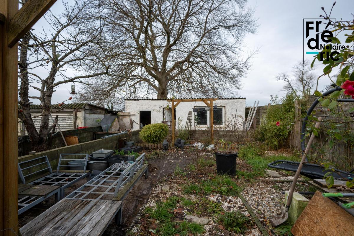 Maison avec terrasse, annexe et jardin sur un terrain de 3 a 05 ca. Il se compose de deux étages et d'une cave. Au rez-de-chaussée : un grand living dessert cuisine, salle de douche et une chambre (aménagée en lieu et place du garage). Au premier étage : deux chambres.