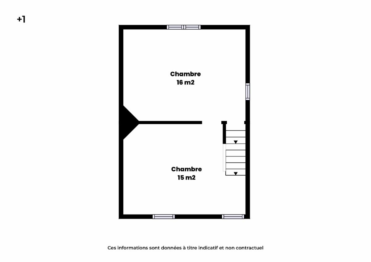 AU 1ER ETAGE (plancher) : une chambre (15m²) et en enfilade une seconde chambre (15m²);