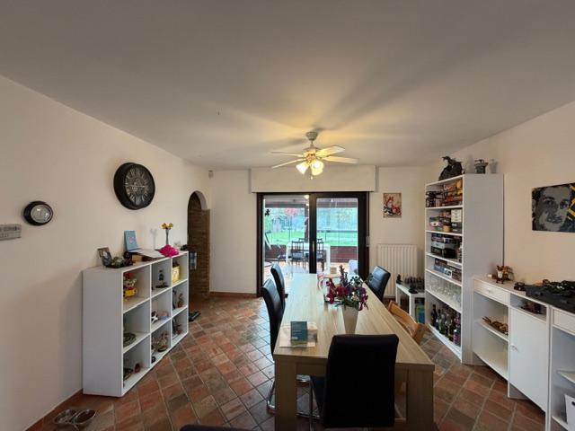 Equipements : châssis double vitrage avec volets mécaniques, raccordement à l'égout, citerne d'eau de pluie, climatisation dans la véranda, alarme, chauffage central au gaz. Contrôle de l'installation électrique en cours.
