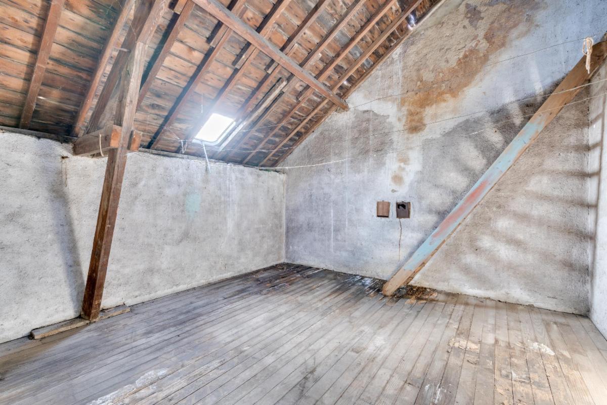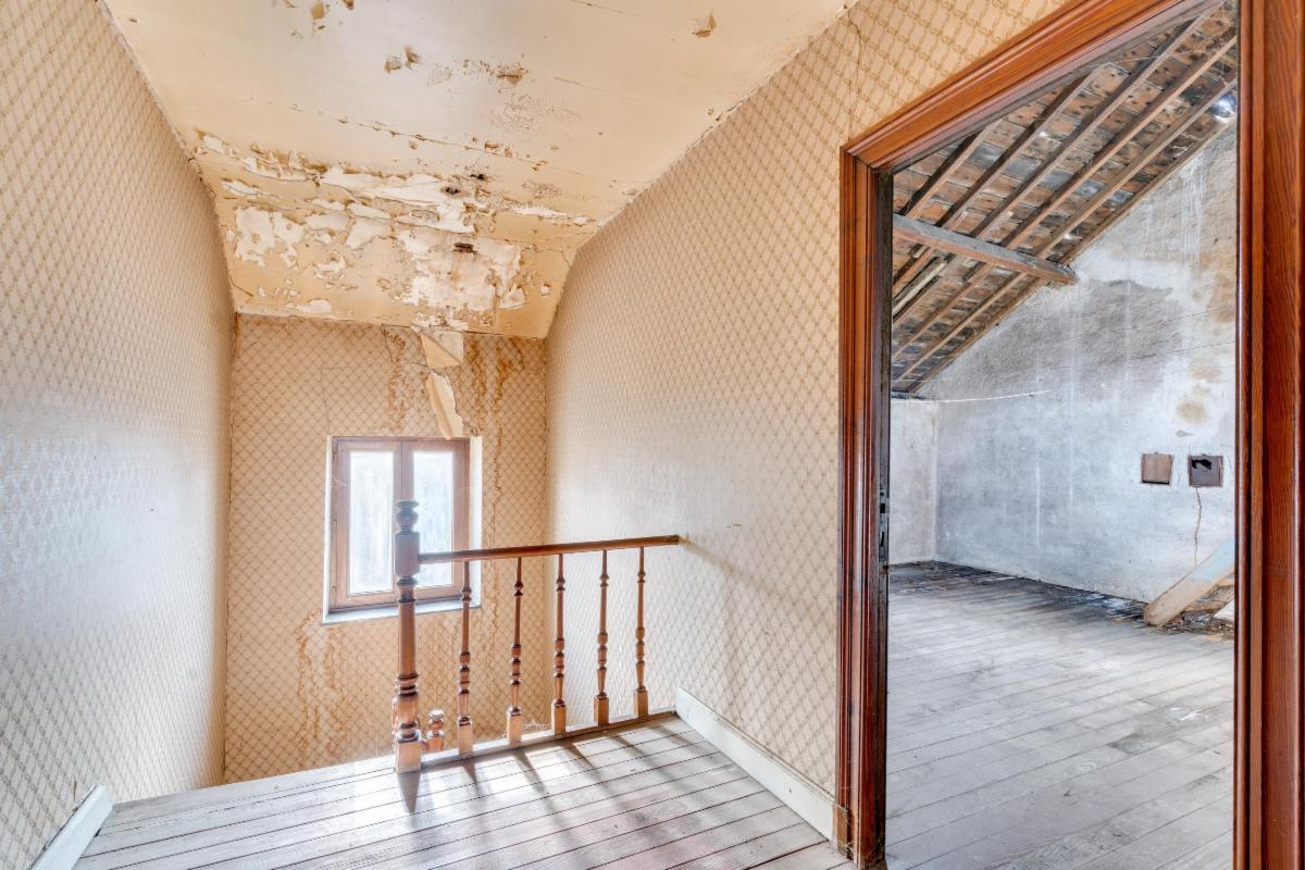 L’ensemble nécessite une rénovation majeure, y compris la toiture, mais la structure existante permet d’imaginer facilement une belle habitation familiale.