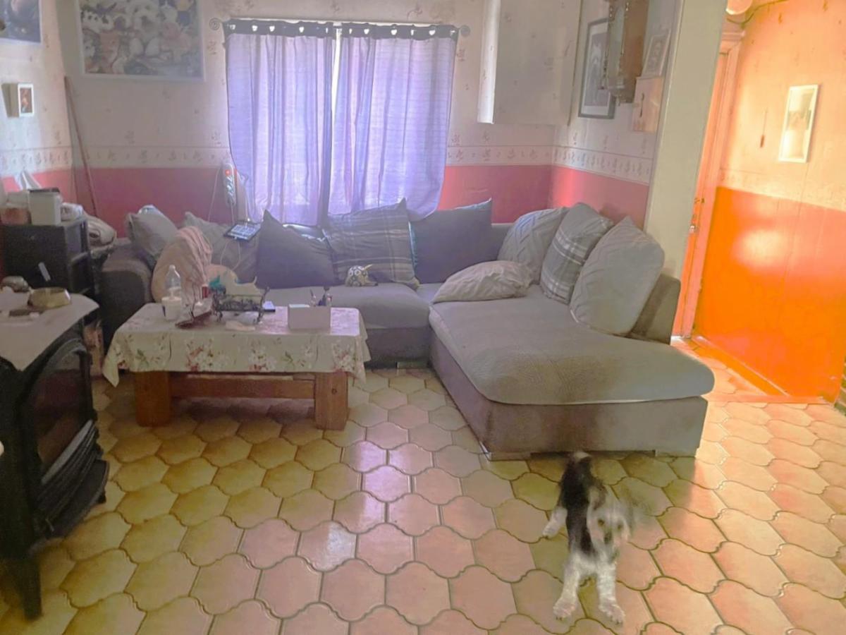 Rez-de-chaussée : Living - Cuisine non équipée - Salle de bain (baignoire, lavabo simple, WC) - une pièce sur le côté