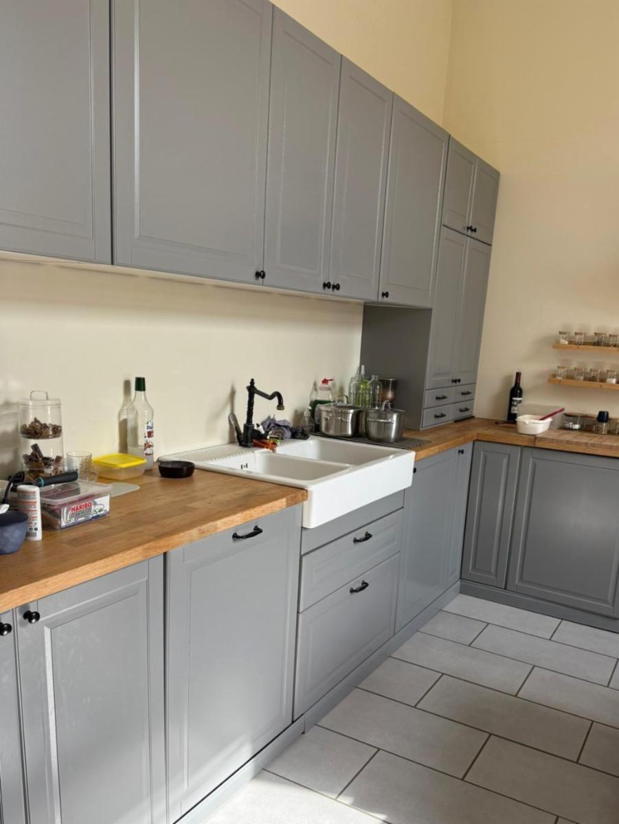 Rez-de-chaussée : Living - Cuisine équipée - Salle de bain (Lavabo double, douche italienne, baignoire) - Buanderie (en travaux) - WC séparé