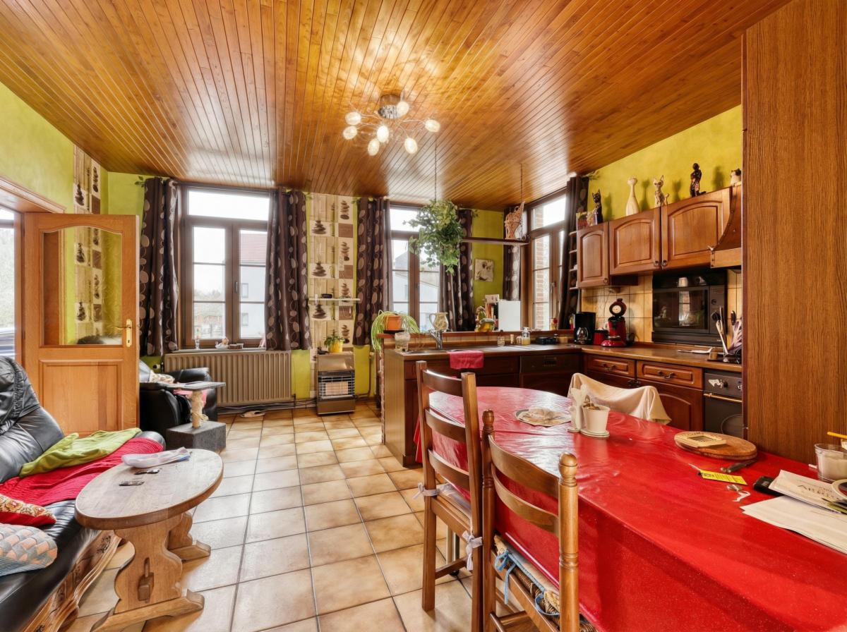 Maison volumineuse à rafraîchir avec garage et pâtures, un ensemble situé à 6470 SIVRY, rue de la Marzelle, numéro 1, d'une superficie totale de 14a 40ca comprenant :