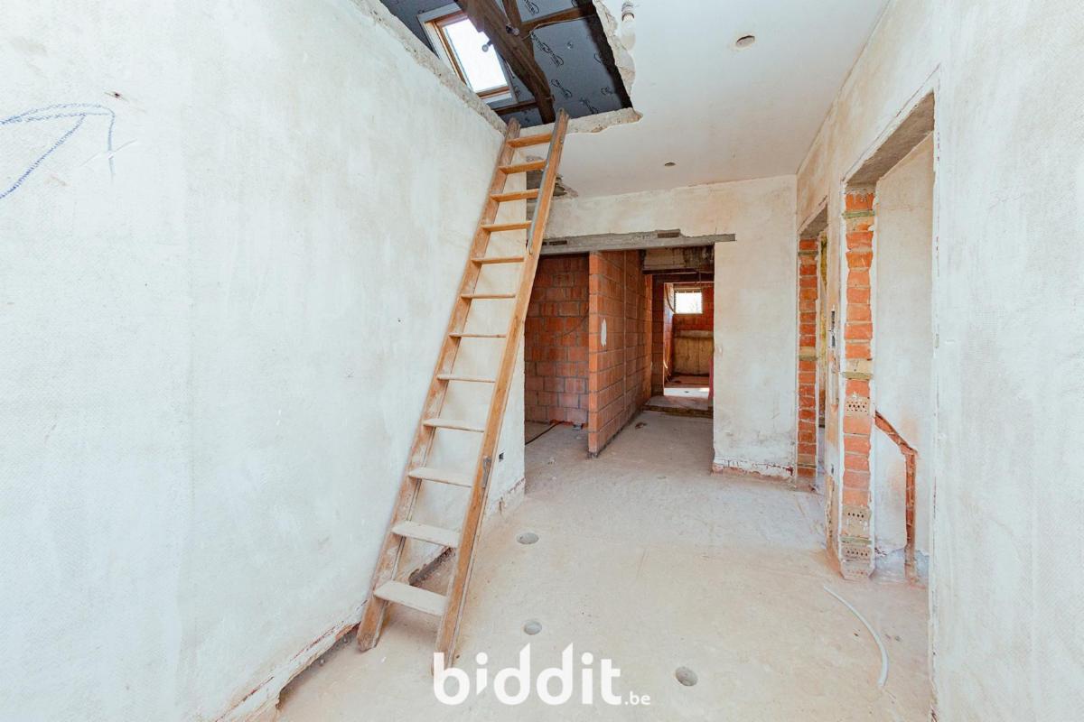 Une maison à finir avec une extension sur et avec terrain et dépendances, située au 39 Wijstraat. Au rez-de-chaussée, la maison existante comprend : un bureau avec entrée séparée, des toilettes, un débarras/kitchenette, une salle de réunion/archives. La nouvelle partie comprend une entrée privée avec escalier, des toilettes, un espace de vie ouvert et spacieux avec possibilité d'une cuisine ouverte avec îlot et un débarras. À l'étage se trouvent les pièces suivantes : couloir avec 4 chambres (dont 1 avec dressing attenant et une salle de bains avec espace pour douche à l'italienne et baignoire), une salle de bains, un espace pour l'installation d'un escalier fixe vers le grenier (à aménager) et des toilettes. Quelques explications : - L'ensemble du sol (partie existante et nouvelle partie) a été isolé. - Il y a deux citernes d'eau de pluie (reliées entre elles) de 7 500 litres chacune dans le jardin avant. - Le jardin avant comprend également un bassin d'infiltration et une nouvelle fosse septique. Le raccordement au réseau d'égouts n'est pas encore disponible. - La nouvelle partie n'est pas encore équipée de fenêtres ni de couverture de toit. - Le toit du garage est déjà recouvert d'EPDM. G score: A P score: A