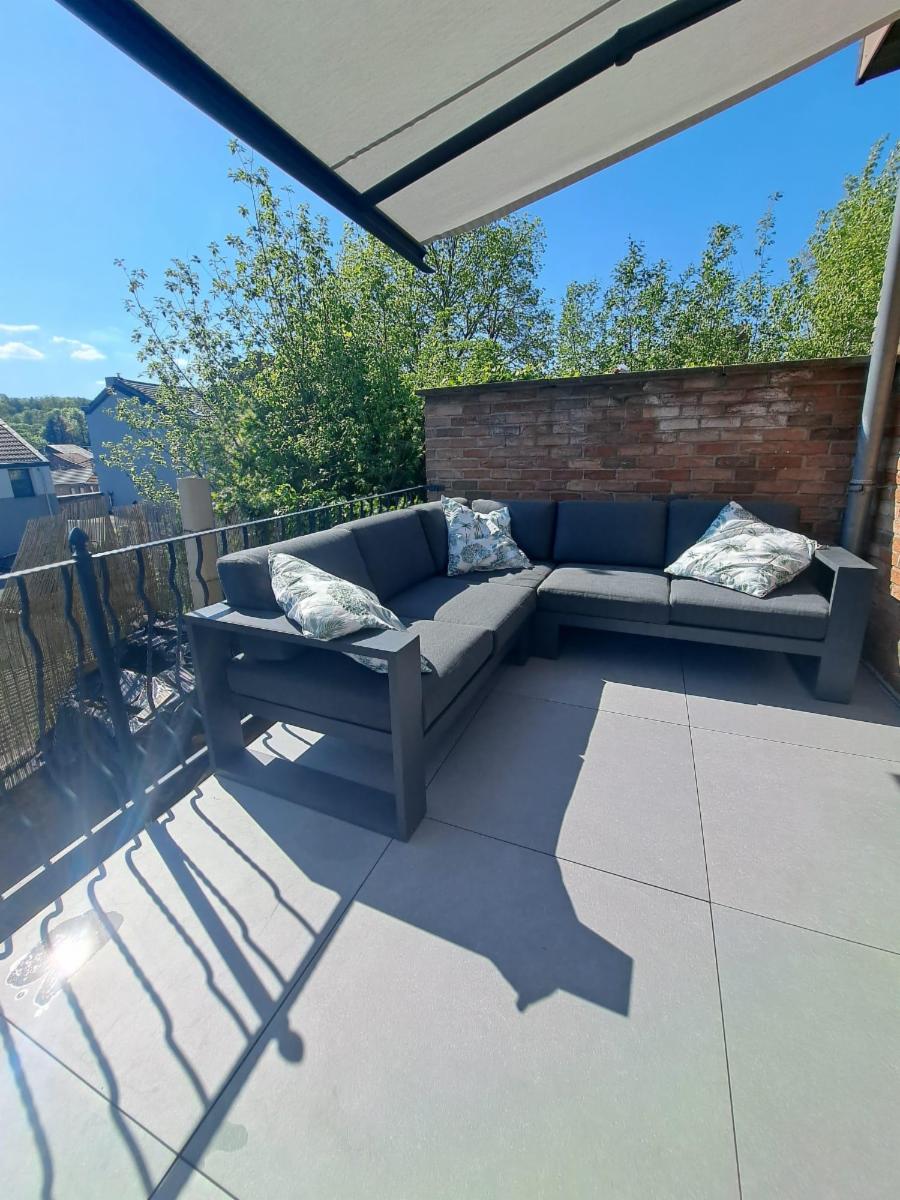Terrasse exposée sud avec banne solaire.