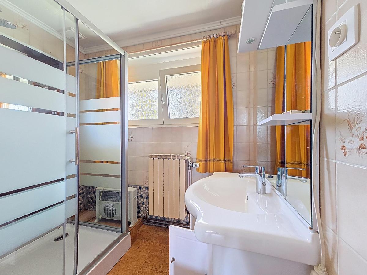 À l’étage, le hall de nuit distribue trois chambres indépendantes de belles dimensions ainsi qu’une salle de bains équipée d’une douche et d’un meuble lavabo simple vasque.