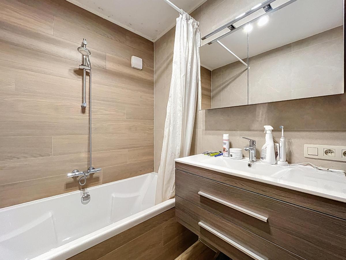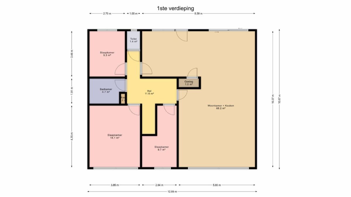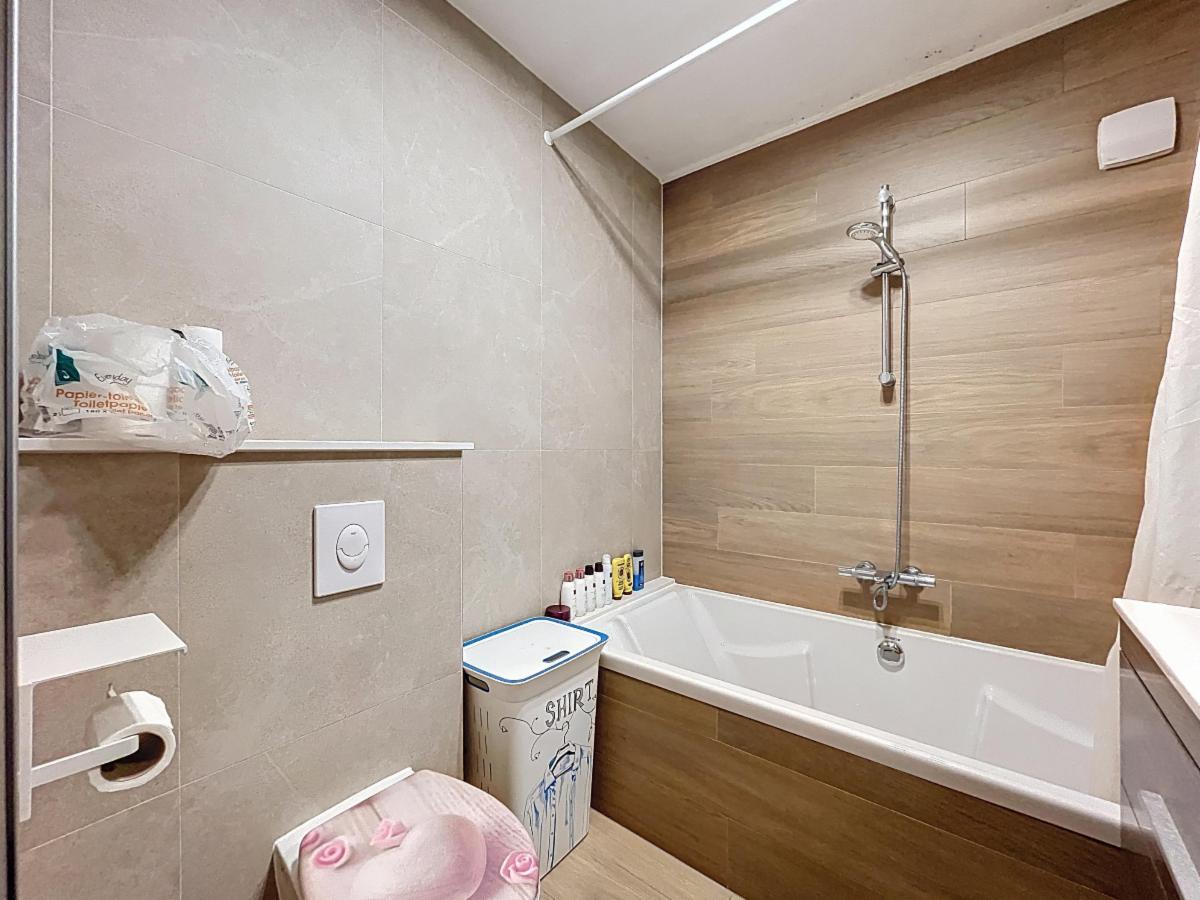 Le premier étage se compose d’un séjour lumineux avec cuisine attenante, d’un WC séparé, d’une salle de bains équipée d’une baignoire et d’un meuble lavabo simple, ainsi que de trois chambres.