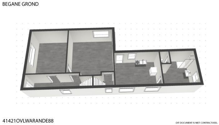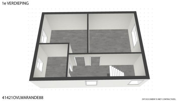 Rez-de-chaussée : hall d’entrée avec escalier, salon, salle à manger, cuisine, salle de bains avec WC ;