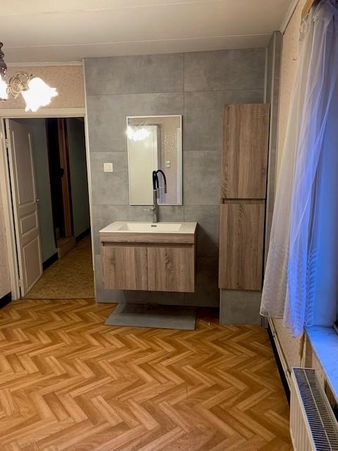 Maison au centre d'Ath (face à l'accadémie de musique) - facilités commerces, écoles, train, bus. Rez: hall, living/salle à manger, cuisine (meubles, doubke évier, hotte, lave-vaisselle), salle de douche (douche, meuble llavabo, wc). 1er étage: 3 chambres, 1 espace avec armoire lavabo. grenier. Alarme et panneaux photvoltaïques (sans garantie de fonctionnement). Chauffage cebtral gaz, pompe à chaleur électrique et chauffe eau électrique (cfr cert PEB), Petite cour. Volets électriques au rez et manuels à l'étage