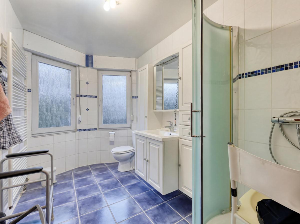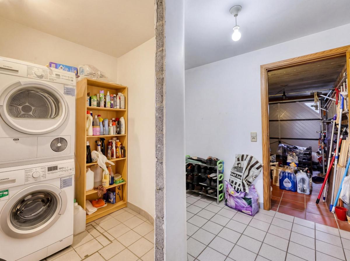 au rez-de-chaussée: séjour, cuisine, salle de bains (WC-douche-évier), coin pour machines à lessiver, garage