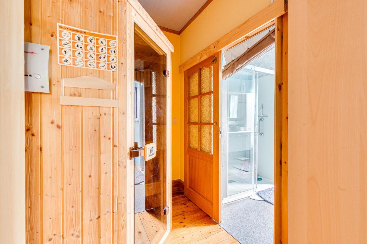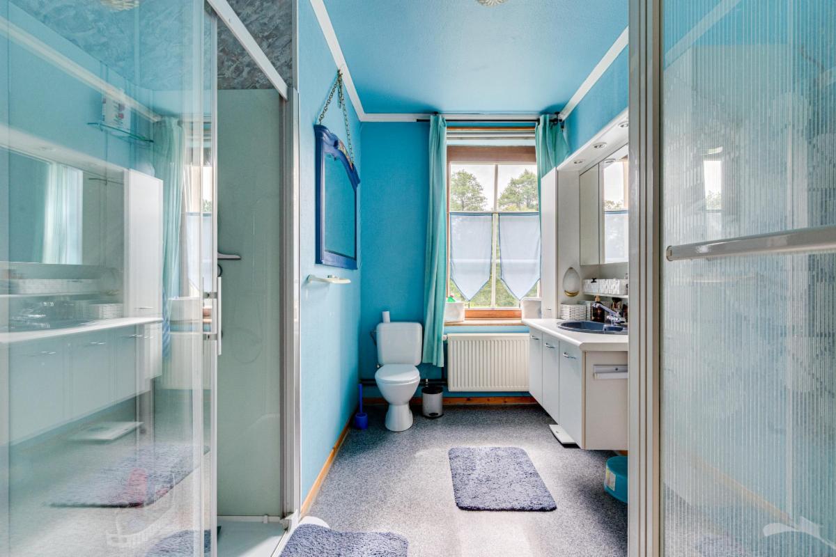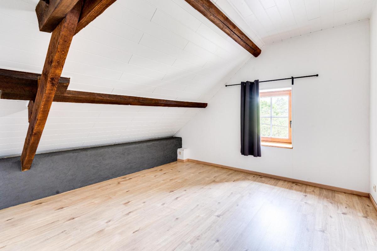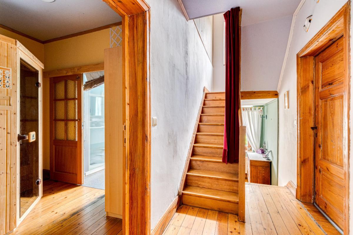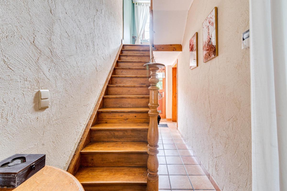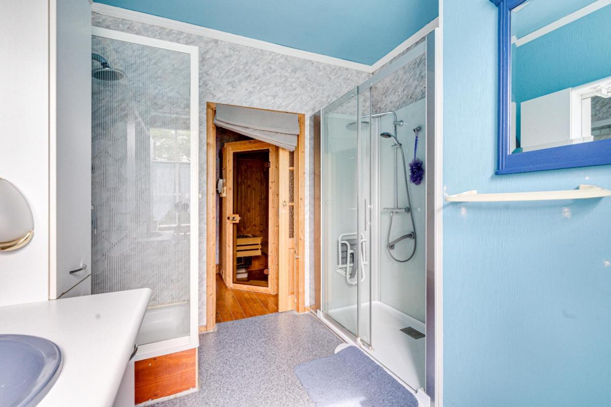 Un escalier en bois mène à l’étage, trois chambres, une salle de bains et un sauna, idéal pour se détendre après une journée bien remplie.