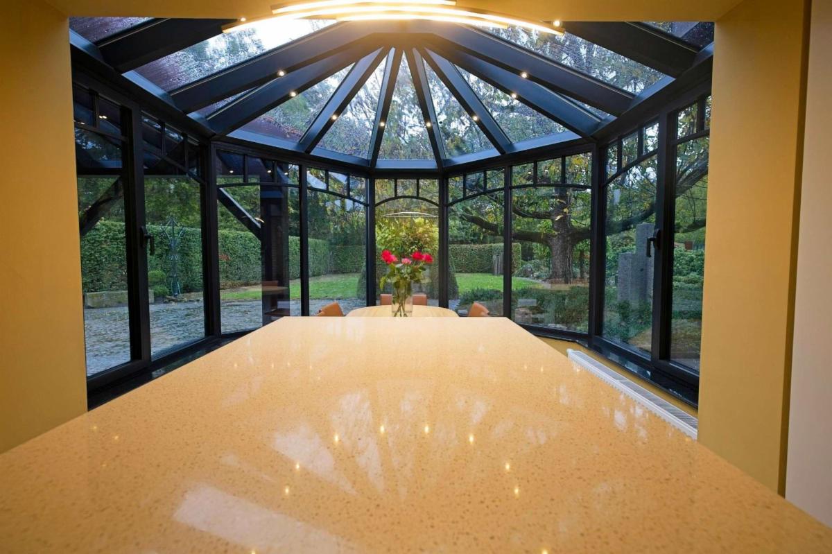- Vue imprenable sur le jardin depuis les pièces à vivre (cuisine ouverte sur le jardin d'hiver)