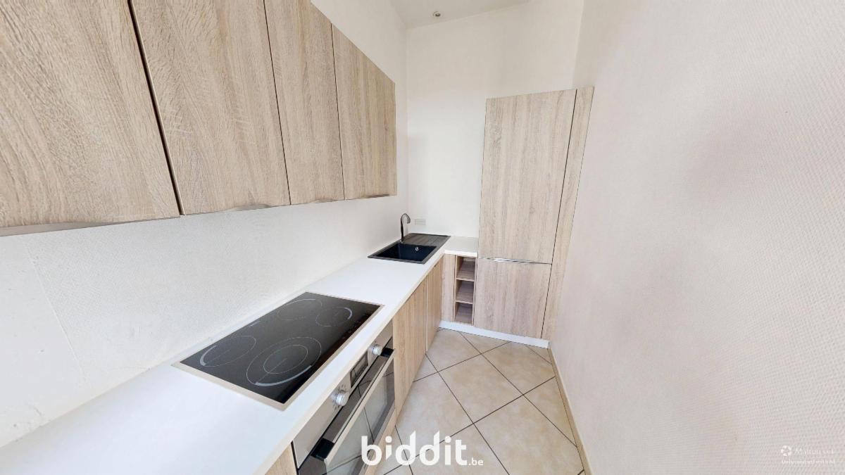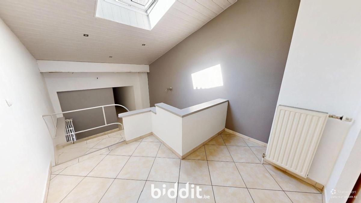 1ER /APPARTEMENT 2 : Cuisine – salon/salle à manger – étage supérieur composé de deux chambres – une salle de douche et accès au grenier – PEB C – installation électrique non-conforme.