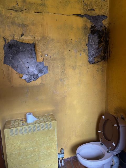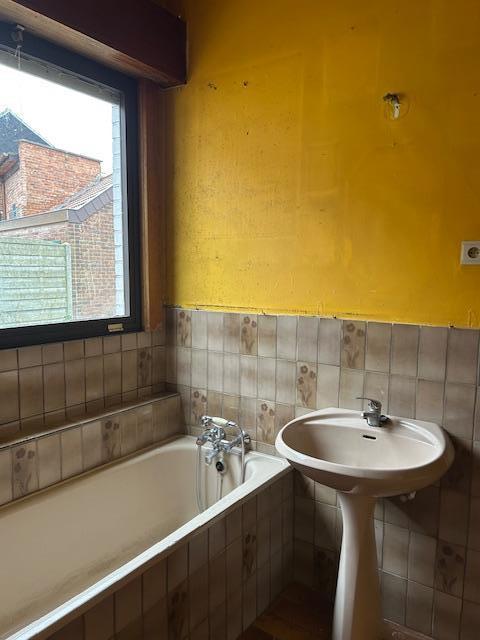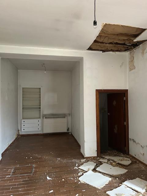 Rez-de-chaussée: rez commercial, salle à manger, salon avec baie vitrée, cuisine, salle de bain (baignoire, évier, WC).