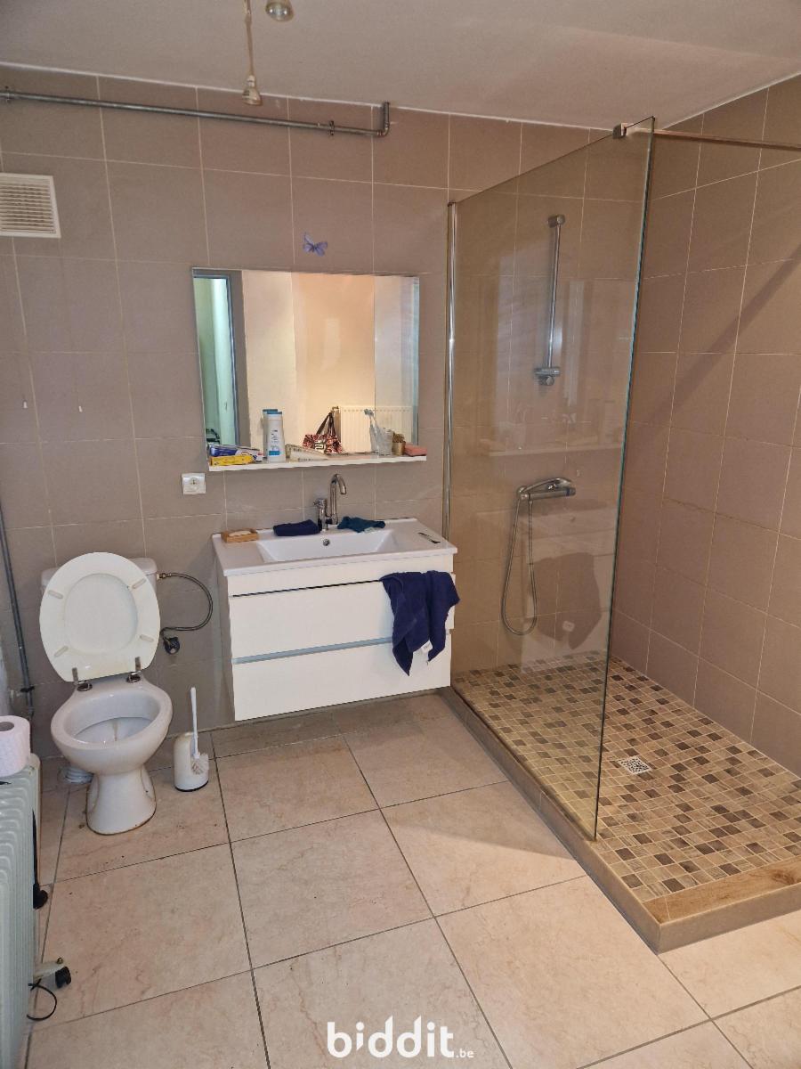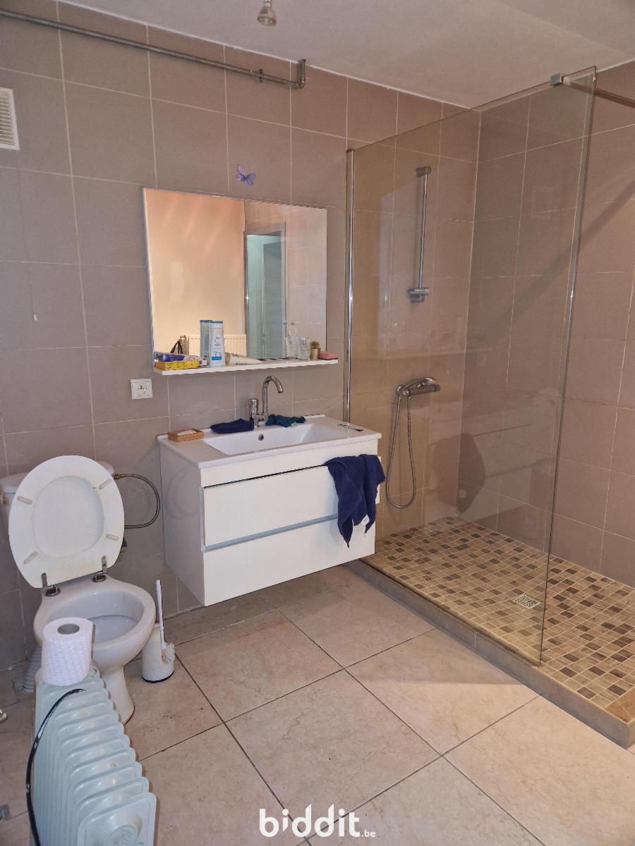 RDC : une habitation comprenant un living, cuisine, salle de bains avec douche, WC et Lavabo, débarras et une chambre.