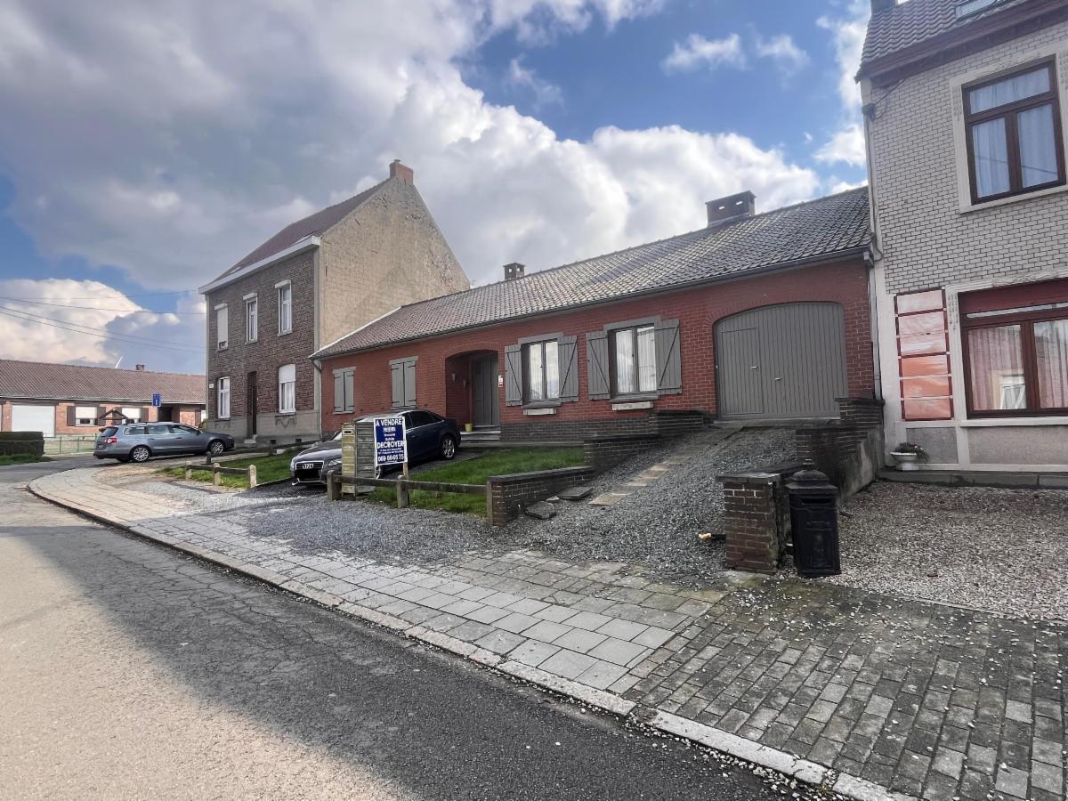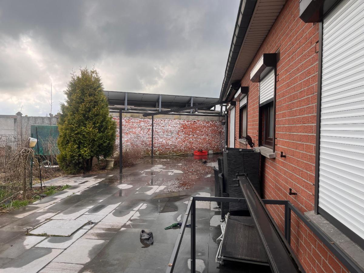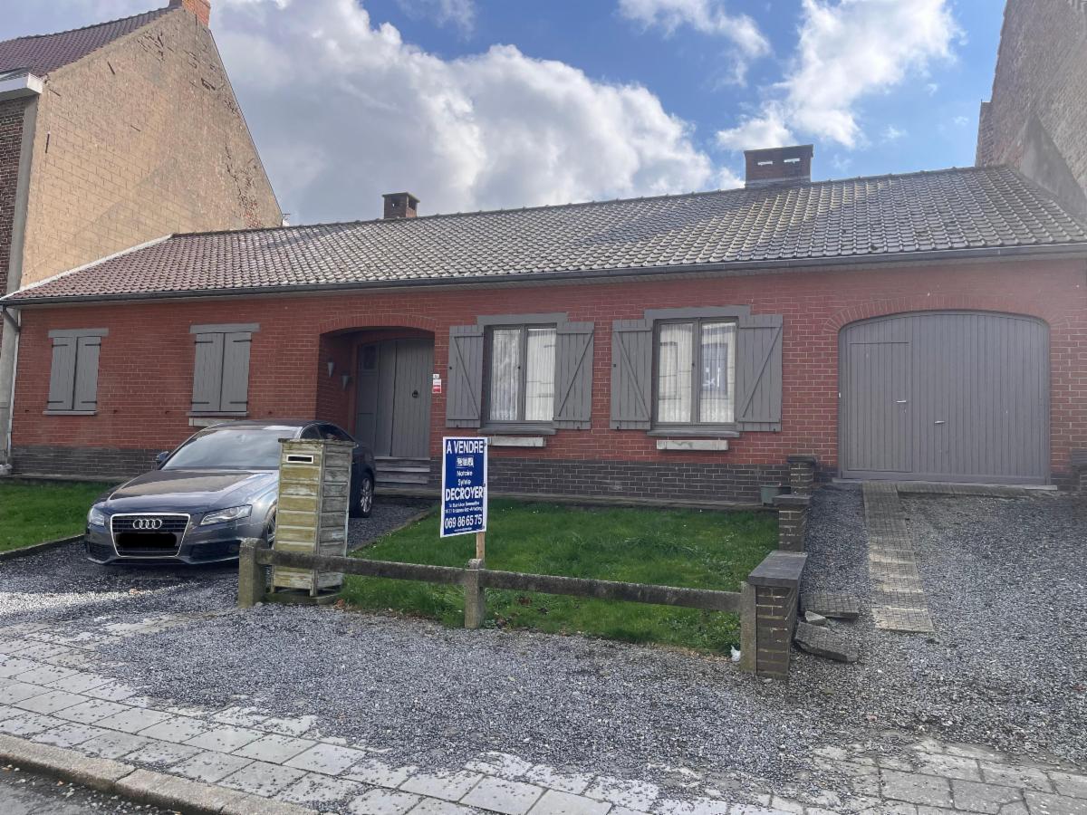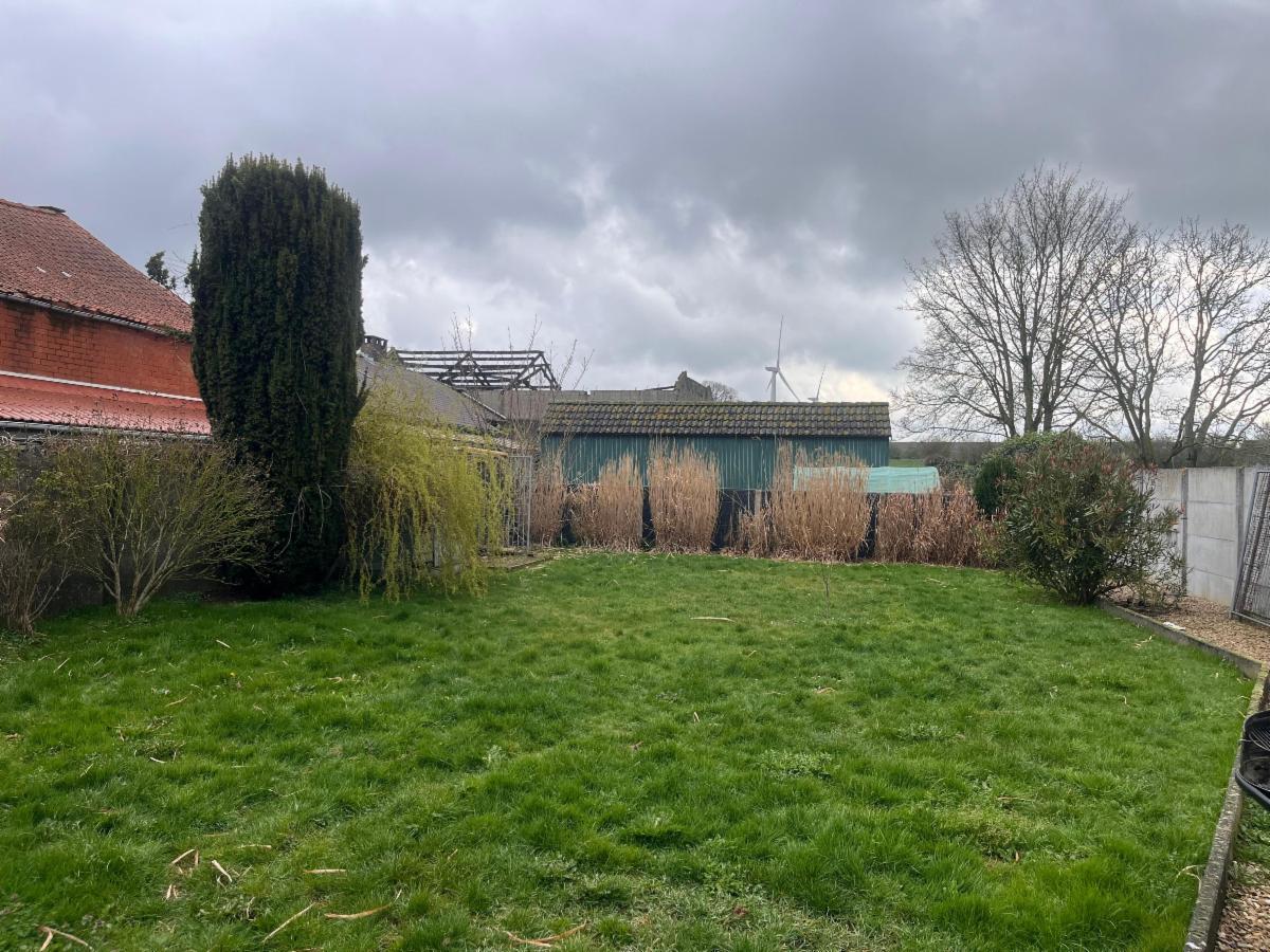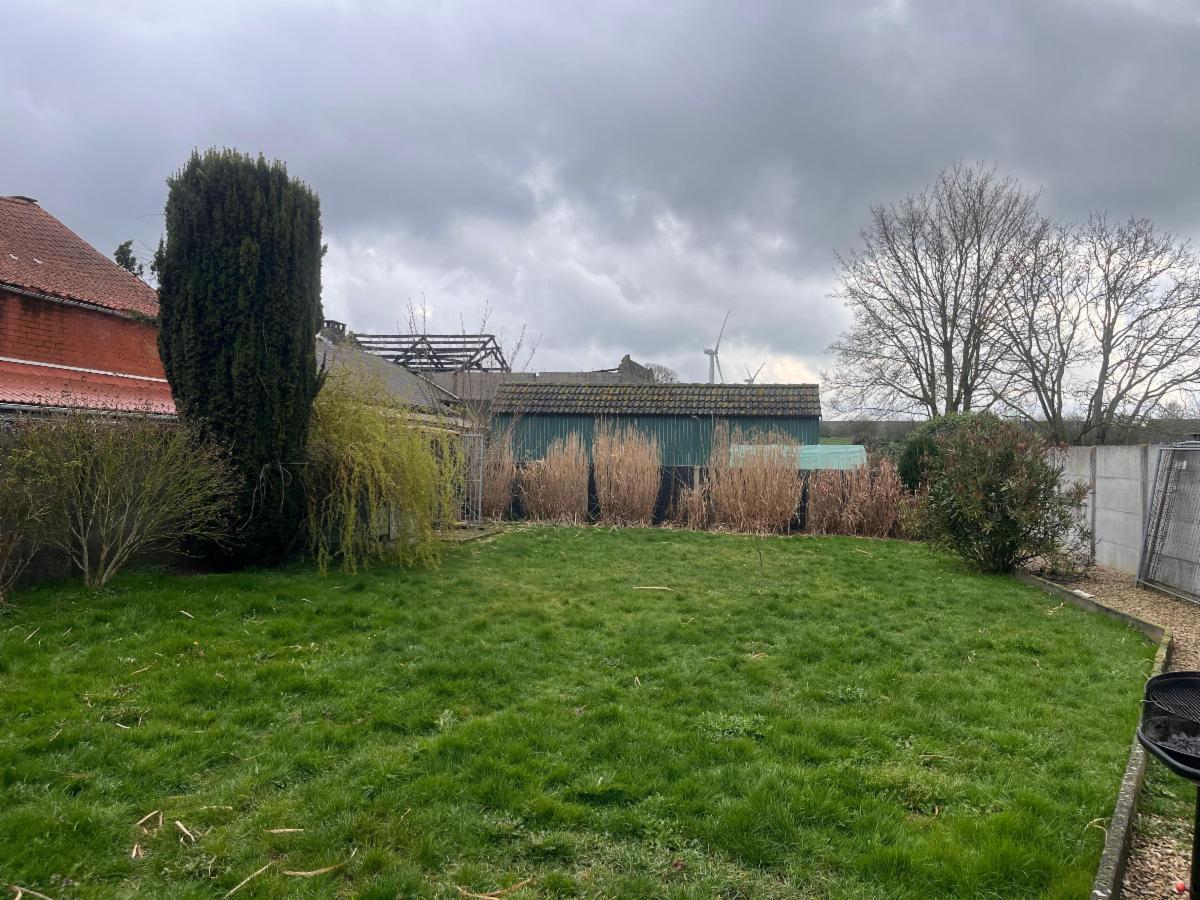 Maison sise sur et avec 5 ares 99 centiares, comprenant: un hall d'entrée avec penderie, un wc avec lavabo, un salon, une salle à manger, une cuisine équipée (hotte, taques, four, 2 éviers, lave-vaisselle), une buanderie, un hall de nuit desservant 3 chambres et une salle de bains avec wc, lavabo et une baignoire, un garage, un grenier (aménageable) accessible par une trappe - une terrasse avec tente solaire - un jardin - Chauffage central au mazout + feu au bois - châssis double vitrage avec volets (à l'arrière) - compteur électrique simple - alarme - toiture isolée - vide-sanitaire - RC : 922 €