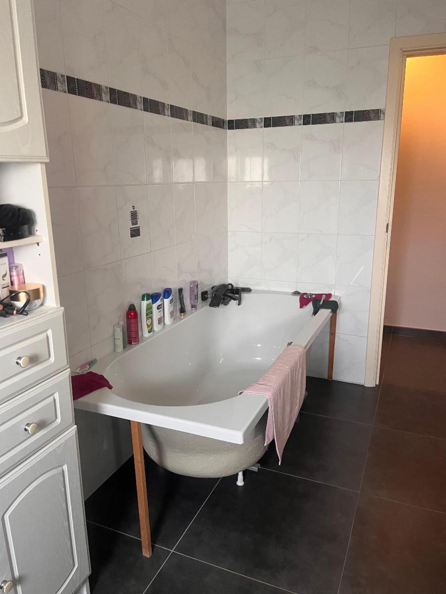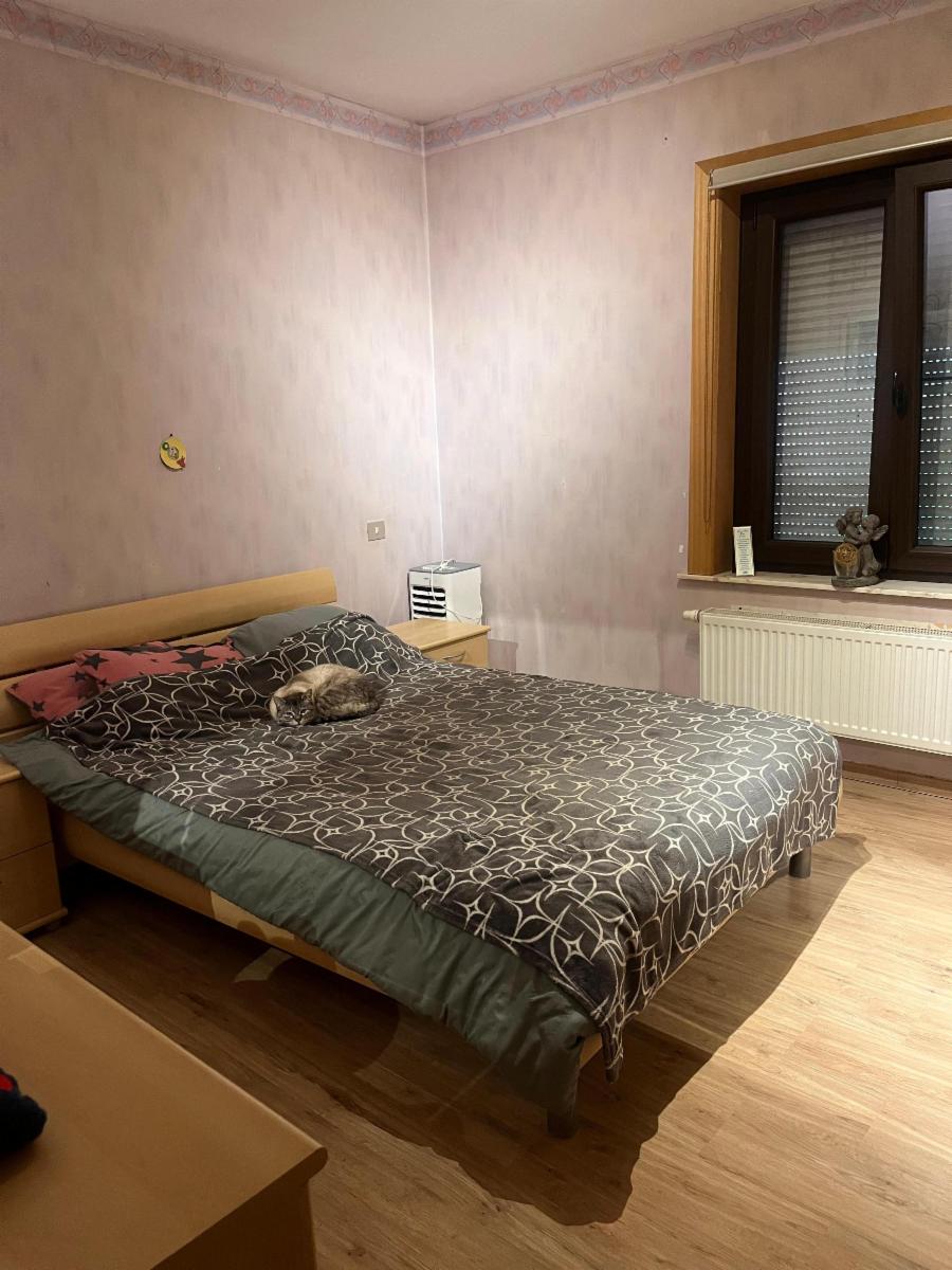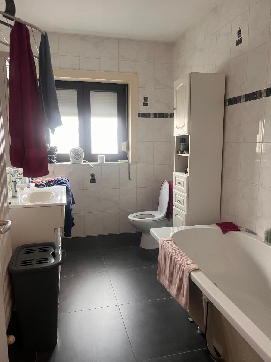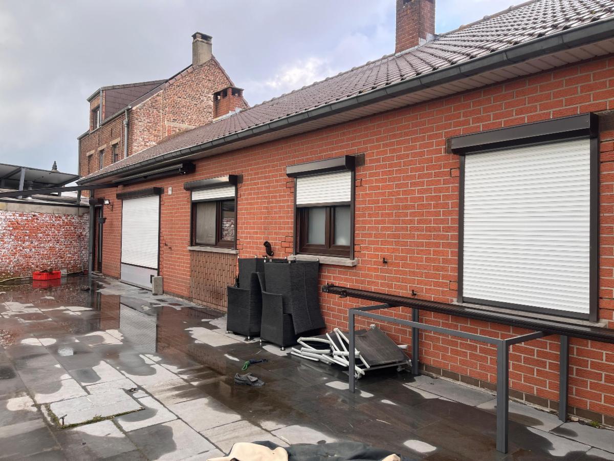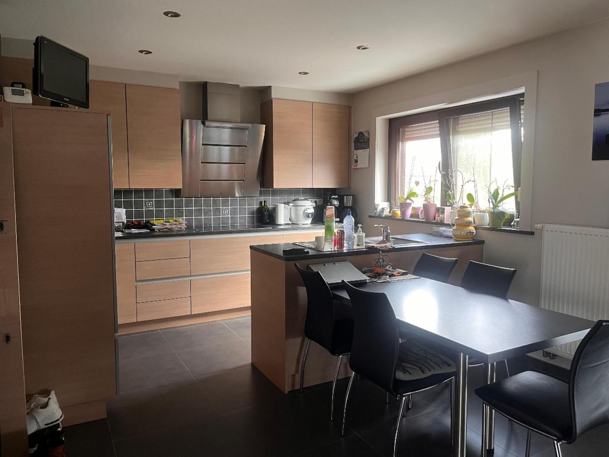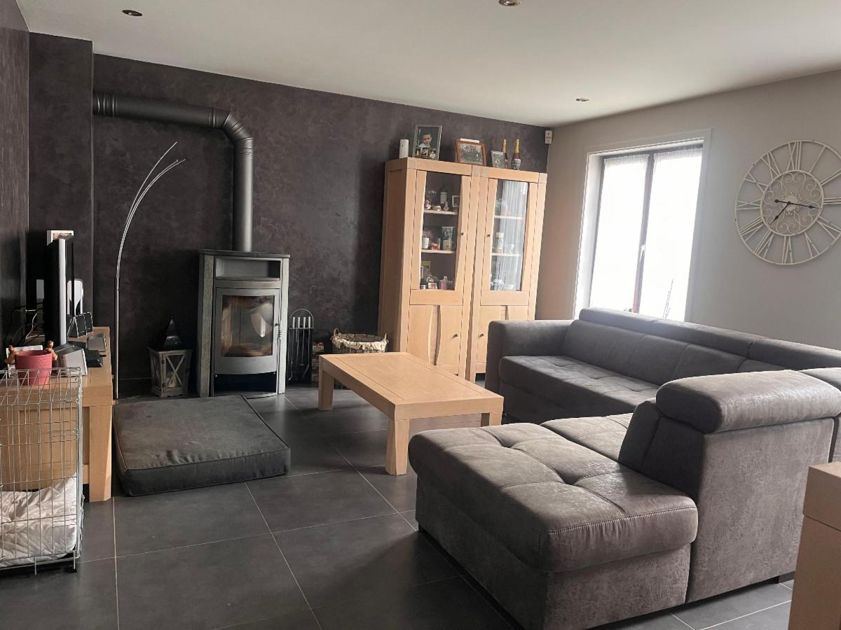Maison sise sur et avec 5 ares 99 centiares, comprenant: un hall d'entrée avec penderie, un wc avec lavabo, un salon, une salle à manger, une cuisine équipée (hotte, taques, four, 2 éviers, lave-vaisselle), une buanderie, un hall de nuit desservant 3 chambres et une salle de bains avec wc, lavabo et une baignoire, un garage, un grenier (aménageable) accessible par une trappe - une terrasse avec tente solaire - un jardin - Chauffage central au mazout + feu au bois - châssis double vitrage avec volets (à l'arrière) - compteur électrique simple - alarme - toiture isolée - vide-sanitaire - RC : 922 €