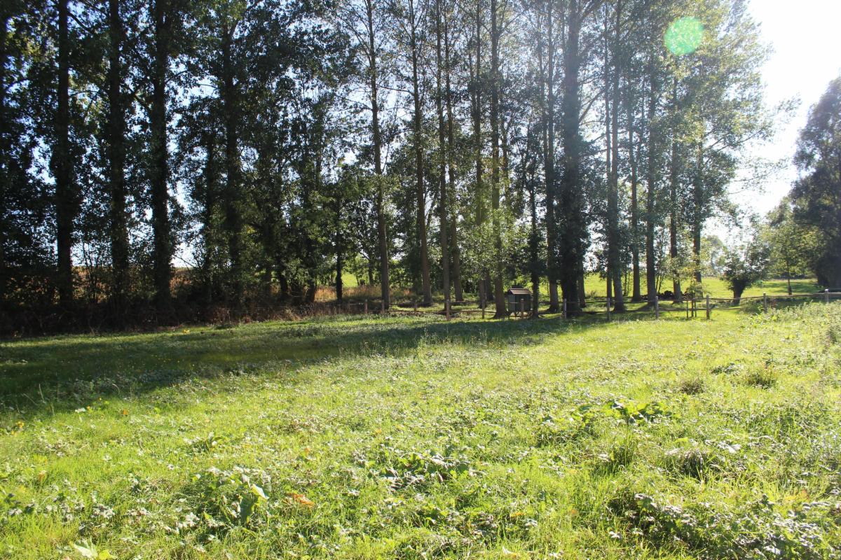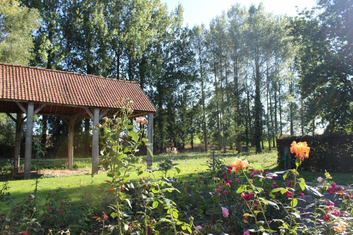 Charmante demeure située dans un cadre verdoyant et champêtre, munie de diverses annexes, garages, petit hangar, sur et avec 60 ares de jardin et prairies.